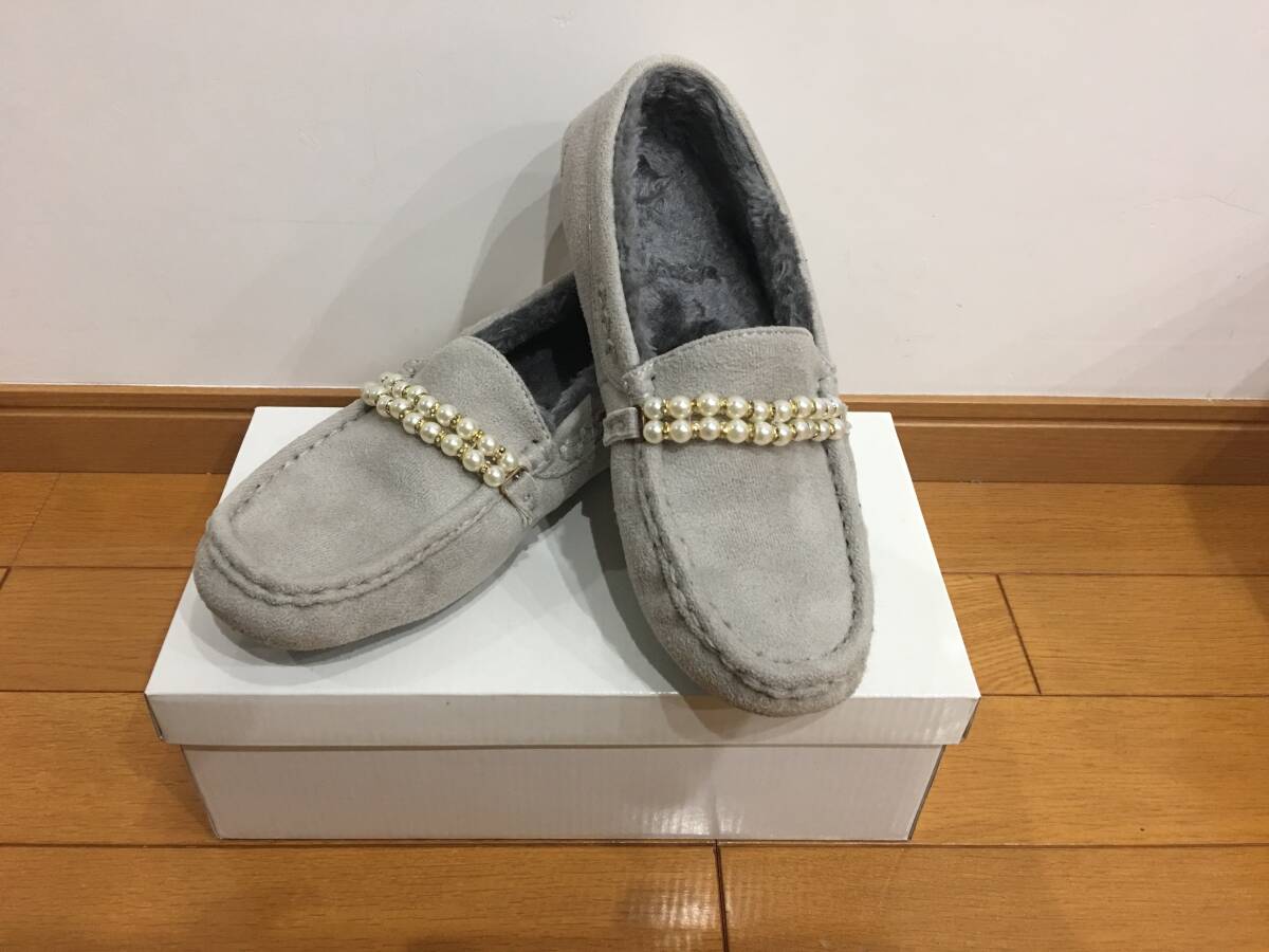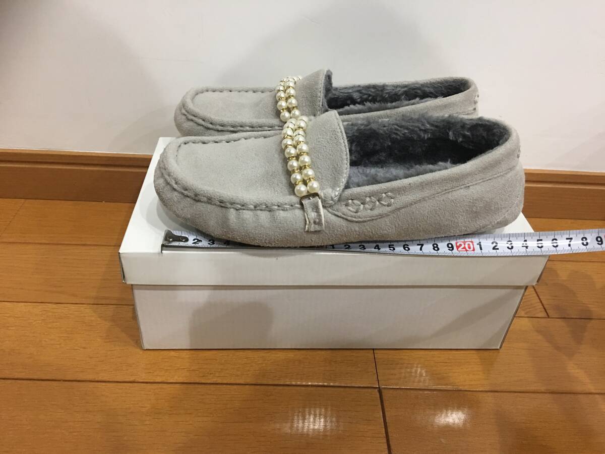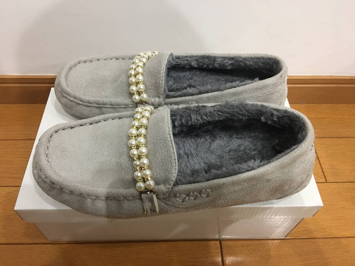 ★23.5cm スリッポン スエード/色:グレー ムートン シューズ 靴 レディース 冬 ※美品