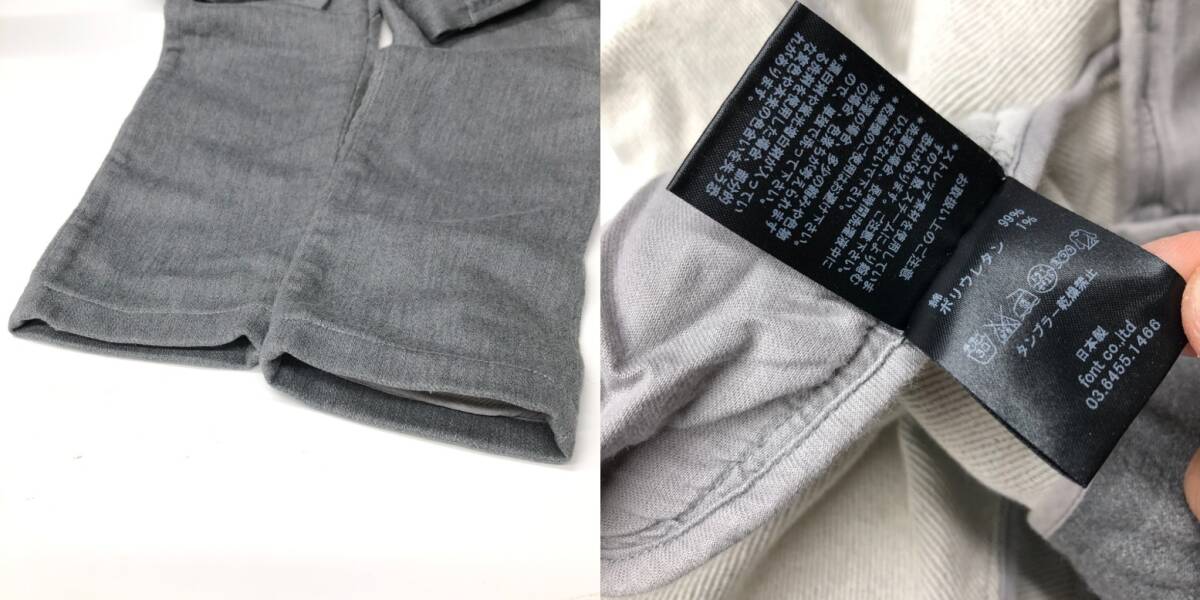 状態…太ももに薄シミ、裾にリペア、ウエストボタンの固定糸に伸びがあります。薄シミはウタマロ石鹸などで取れるかと思います。