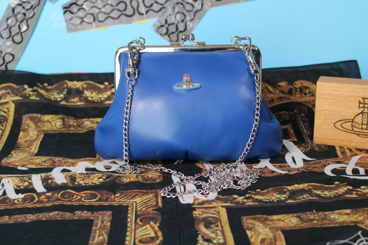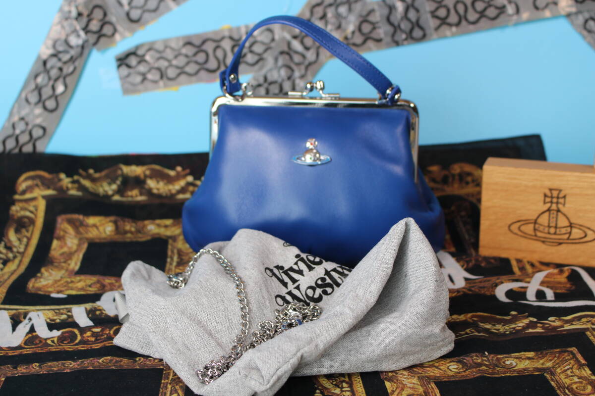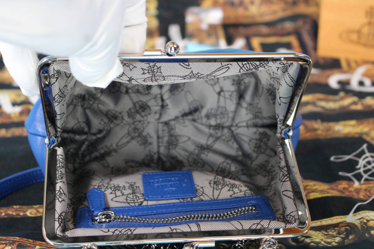VIVIENNE WESTWOOD EMMA FRAME PURSE 2020SS なめらかなレザーを用いたEMMA FRAME PURSE。 シンプルでクラシックなつくり。 フロントにメタルオーブ付き。 取り外し可能なショルダーストラップでハンドバッグ、ポシェットの2WAYでお使いいただけます。 カラー:ブルー 素材:ラムレザー100% 裏地:グレー/落書き風オーブ柄 内部ポケットあり(ファスナー付き) 付属品:収納袋 サイズ :・幅22 高さ13 マチ8 持ち手長さ24 ストラップ長さ120 (cm) なめらかなレザーを用いたEMMA FRAME PURSE。 シンプルでクラシックなつくり。 フロントにメタルオーブ付き。