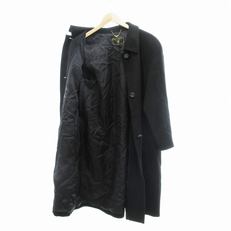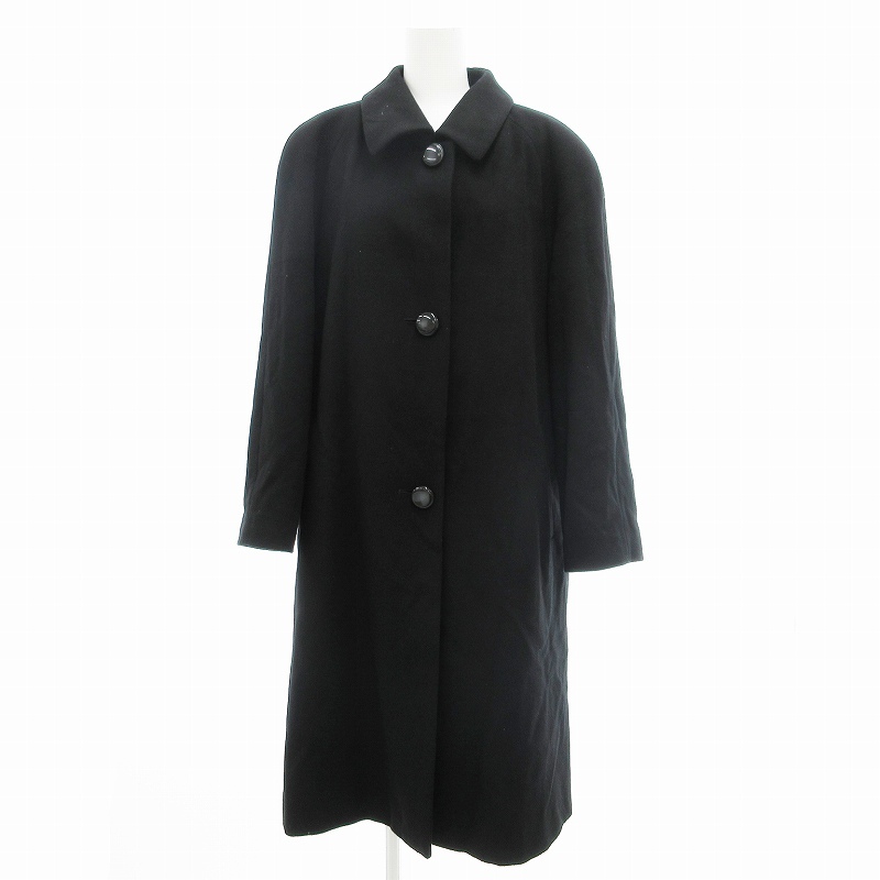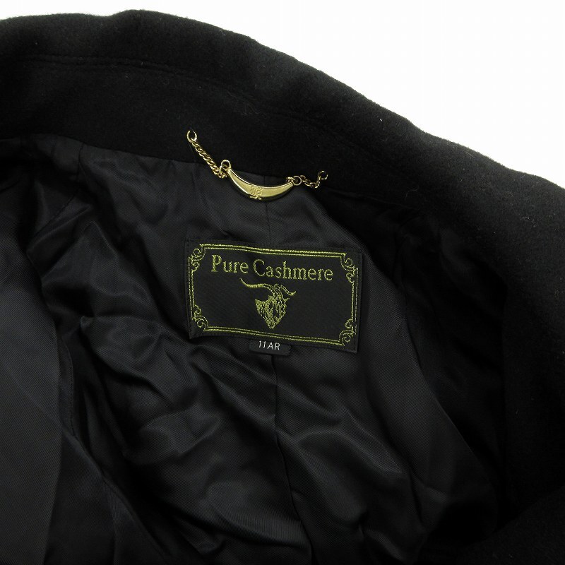 ピュアカシミヤ Pure Cashmere ステンカラーコート ジャケット ロング カシミヤ100% メルトン生地 11 L 黒 ブラック /JS ●ECO