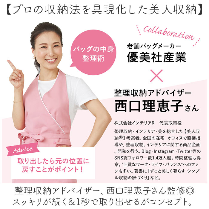 | 商品説明 | ・・【小物を見やすくすっきり整理整頓】 ・充実のポケット仕様◎シンプルながら機能性に優れた「美人収納 多機能3層ショルダーバッグ」 ・【プロの収納法を具現化した美人収納】 ・整理収納アドバイザー、西口理恵子さん監修◎スッキリが続く&1秒で取り出せるがコンセプト。 ・【受付やお会計時も手間取らない!】 ・通院に必要な保険証や診察券、A6の母子手帳。お買い物時に使うカード類を見やすくIN。 ・【開閉スムーズ、安心の天ファスナー】 ・ガバっと開いて取り出しやすく、ファスナーを閉じれば中身の飛び出しをガード。 ・【3層構造でカンタン収納上手】 ・内側には3つの収納スペース。何がどこに入っているか見渡しやすく、取り出したら元の位置に。 ・【迷子知らずな18ポケット付き】 ・・3層に加えて、18個のポケットを装備!バッグの中で探す手間なく、ワンアクション☆ ・【自分仕様にアレンジできて便利】 ・使用頻度の高い物はオープンポケット。取り出す回数が少ない物は内側ファスナーポケットに。 ・【サッと持ち出せる心強い相棒】 ・ショルダーの長さを調節して、肩掛けや斜め掛け。スマートに持ち運べるサイズ感。 ・【ポーチとしても活用できて便利】 ・ショルダーを外して、バッグインもOK。旅行など長距離のお出かけ時にも活躍。 ・【お手入れも簡単なナイロン素材】 ・バッグ本体は、ガシガシ使える丈夫な素材。汚れが気になったら、サッと拭き取るだけ。 ・【コーデに馴染むベーシックカラー】 ・どんなお洋服とも合わせやすく、飽きのこないカラーをラインナップ。シーンも問わず重宝。 ・【整頓が苦手な方でも楽しく☆】 ・整理収納で時間・場所・お金・心の4つのゆとりが生まれる♪誰もが使いやすいシンプル設計。 ・【ポケット仕様】 ・前面側スペース:オープンポケット×5、メッシュポケット×2 ・背面側スペース:ファスナーポケット×1 ・前面:L字ファスナー式ポケット×1(内側にカードポケット×8) ・背面:マグネットポケット×1 |