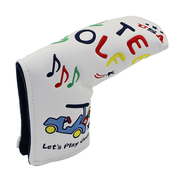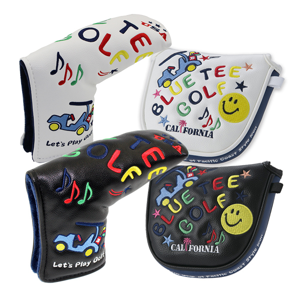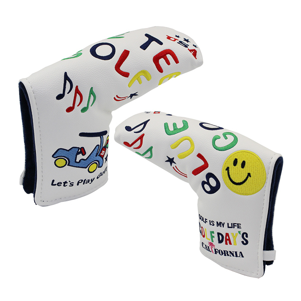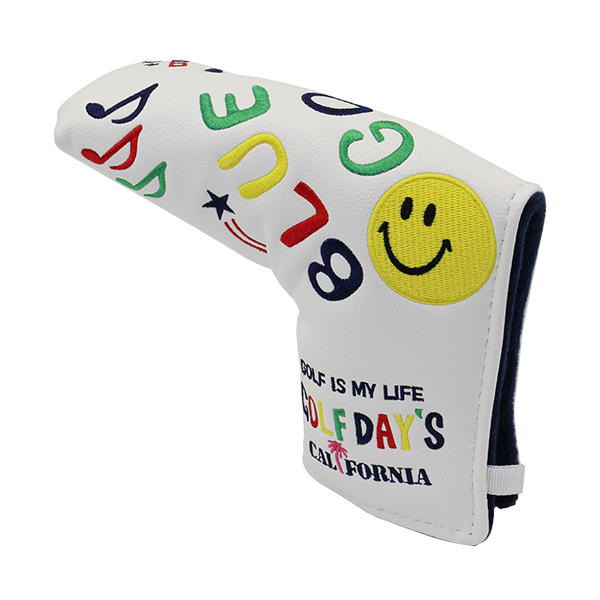 〇オークション♪【PTB-ホワイト】ブルーティーゴルフ【スマイル&カート】ブレード型パター用ヘッドカバー HC-012 送料無料