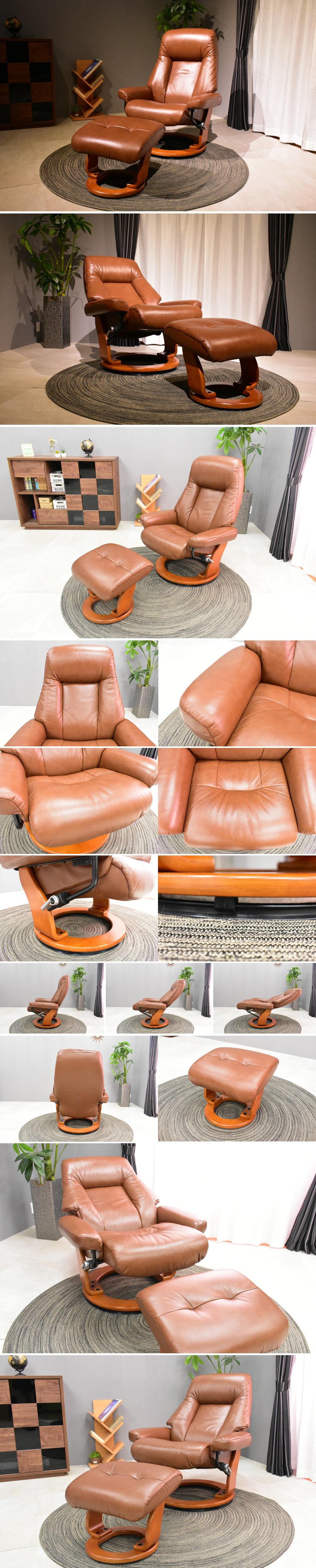 新品 セミアニリン仕上げ本革パーソナルチェア オットマン付きBR リクライニング1Pソファ椅子おしゃれ家具ソファ:NW76F05-KC