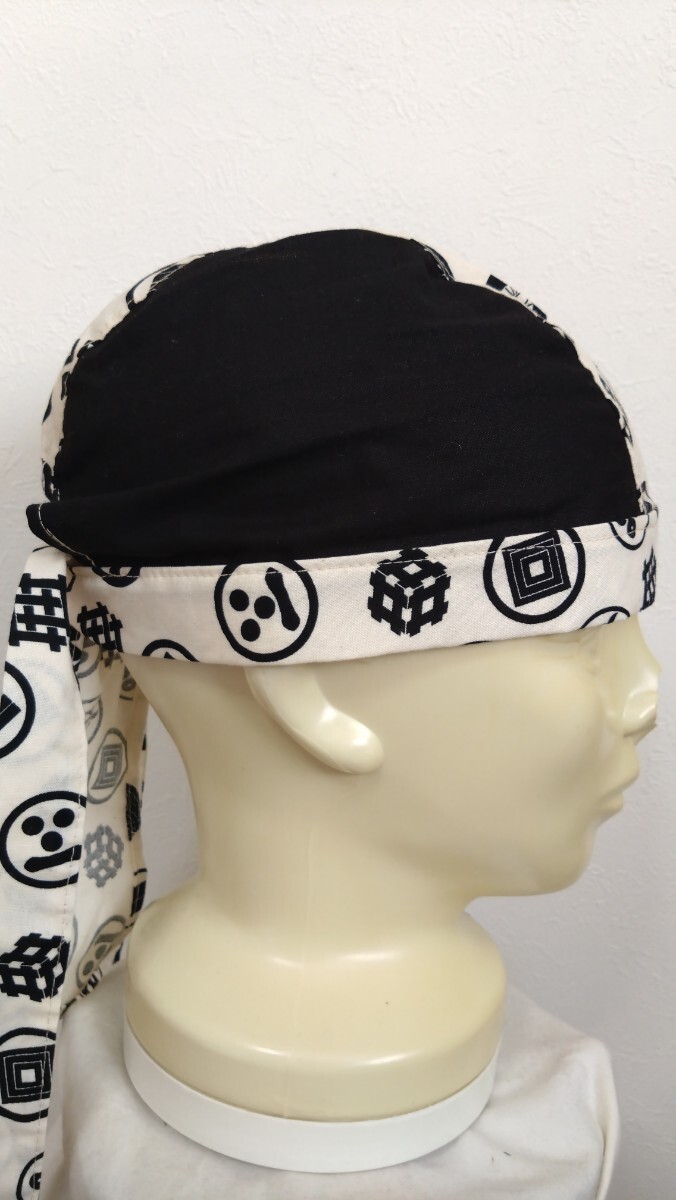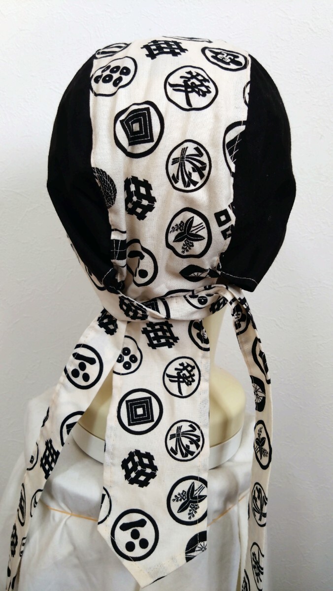 ★バンダナキャップ★ハンドメイド 和柄 家紋×無地 古典 生成り