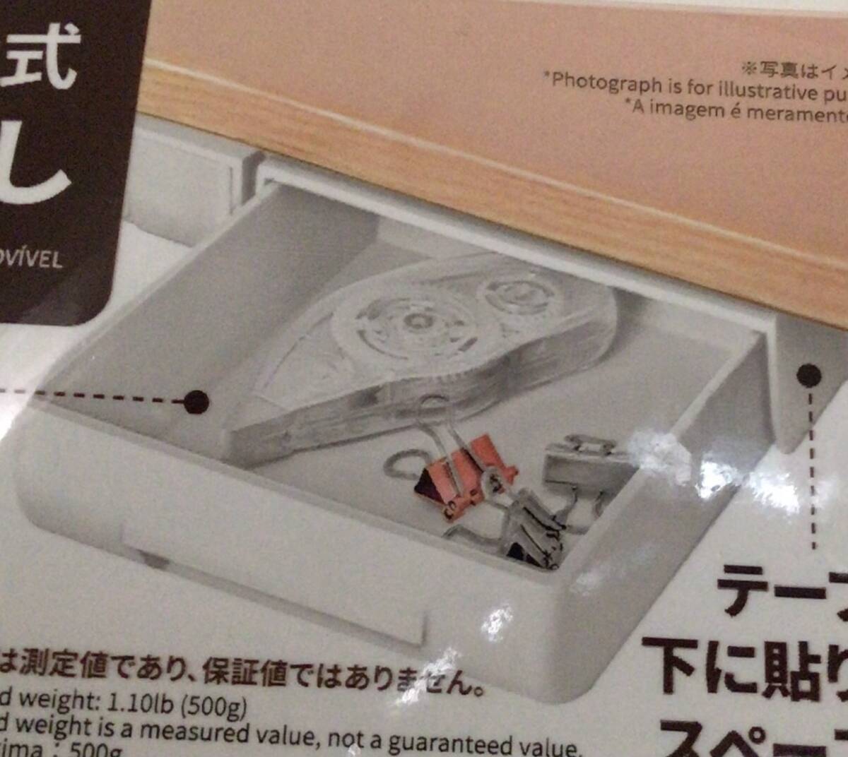 ・机下 小物 収納 整理BOX 貼り付け 引き出し 約横9.3×12.5×4㎝ 耐荷500g ストッパ付 テーブル デスク下です。