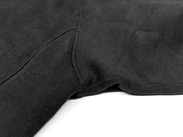 当時のスウェットは縦に縮みやすいという弱点がありました。そこで生み出されたのがこちらの製法。