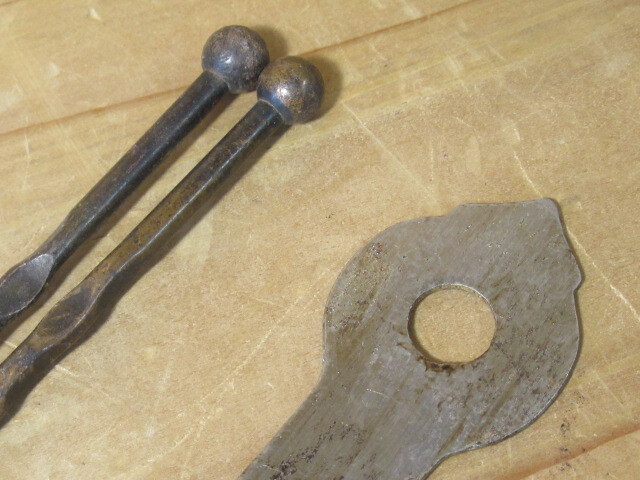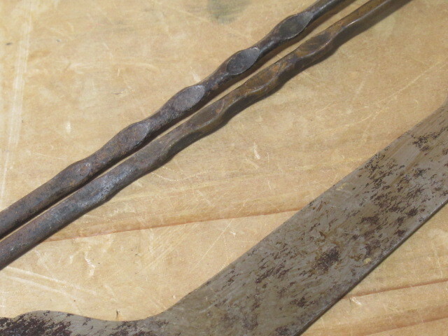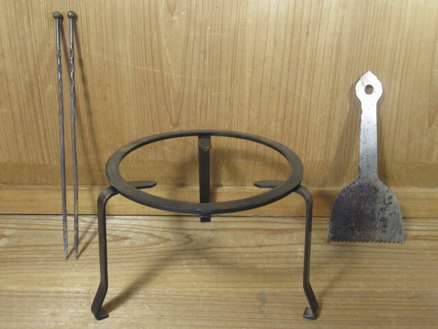 ◆時代囲炉裏道具3点:6:◆三足鉄製五徳◆鉄:持ち手頭宝珠灰掻◆鉄:丸頭よろけ火箸◆鍛冶屋頑丈造◆