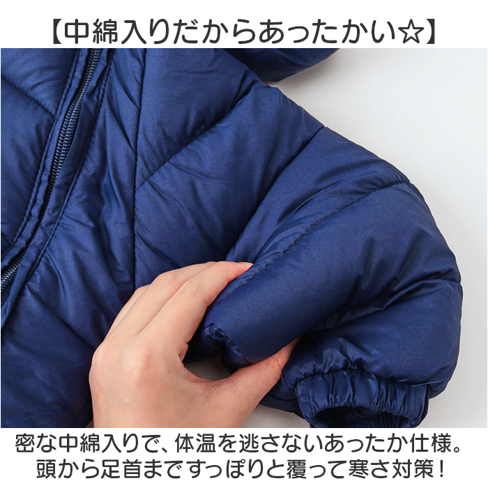 商品説明 | ・・【おしゃれに可愛く♪しっかり防寒!】 ・フードのポンポンがたまらない☆「ベビージャンプスーツ スノーウェア」が登場。 ・【中綿入りだからあったかい☆】 ・密な中綿入りで、体温を逃さないあったか仕様。頭から足首まですっぽりと覆って寒さ対策! ・【寝たままの姿勢で着せやすい】 ・首元から足元まで、ファスナーを長めに配置。寝たままの姿勢でラクラクお着替え♪ ・【ダブルファスナーでおむつ替えOK】 ・ファスナーはダブル仕様なので、足元からオープンすることも◎着たままおむつ替え可能! ・【ゴム入りの袖と裾で冷気をブロック】 ・袖口と裾はゴム入りなので、冷気が入り込みにくく、ヒヤっと感をブロック!ベビーに優しい♪ ・【可愛いポンポンはベビーならでは☆】 ・フードのポンポンがベビーならではのキュートさをUP!冬の思い出ショットを彩る☆ ・【ギフトにもオススメのアイテム】 ・出産祝いやお誕生日のギフトにも喜ばれる!みんなに好印象のシンプルデザインがGOOD! |