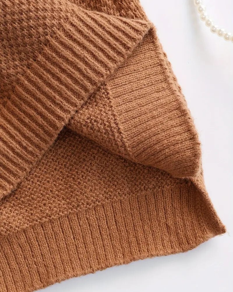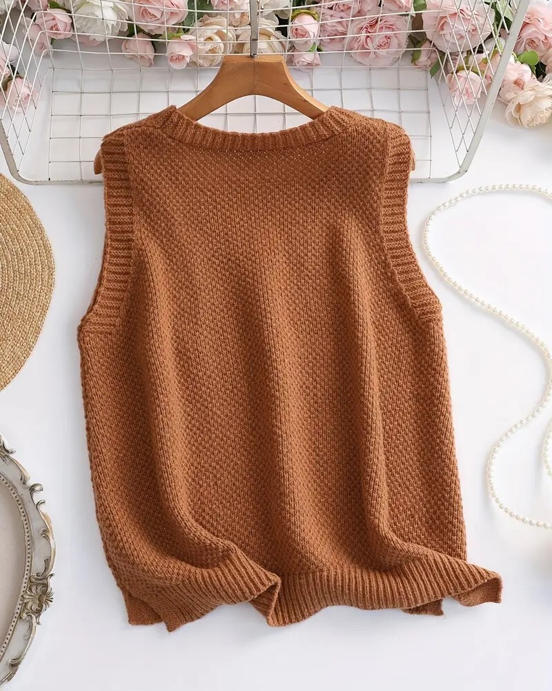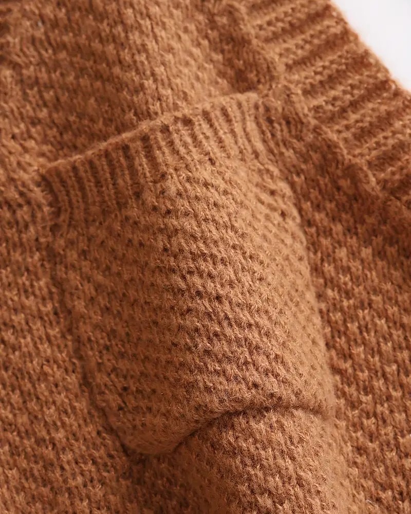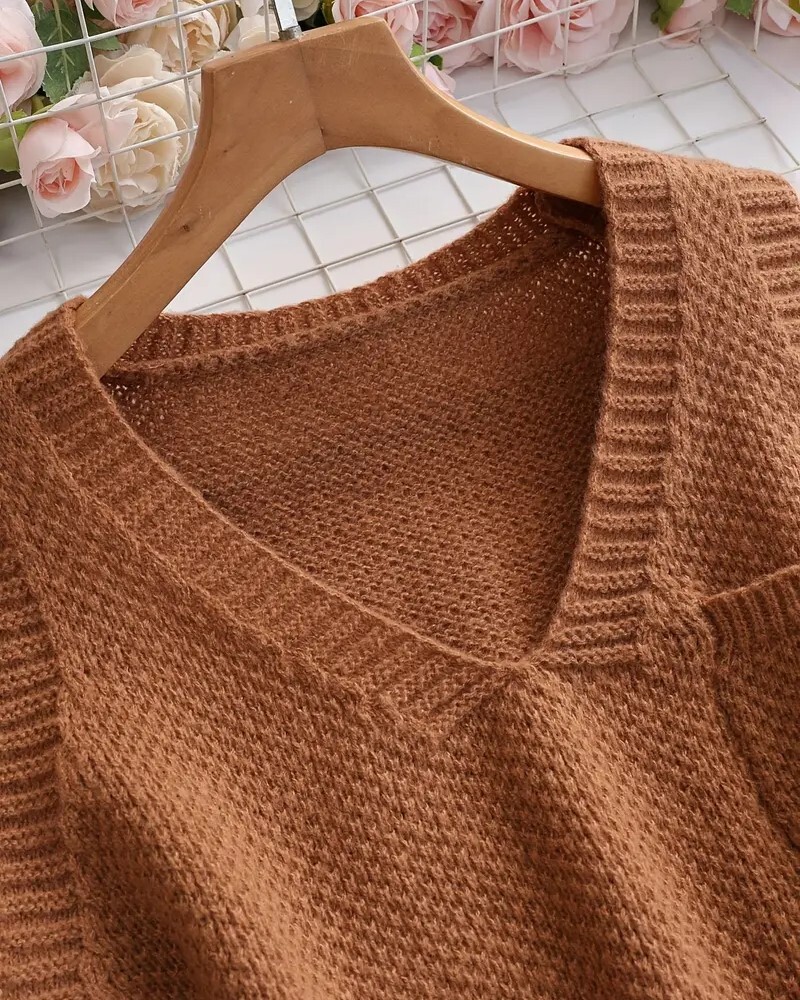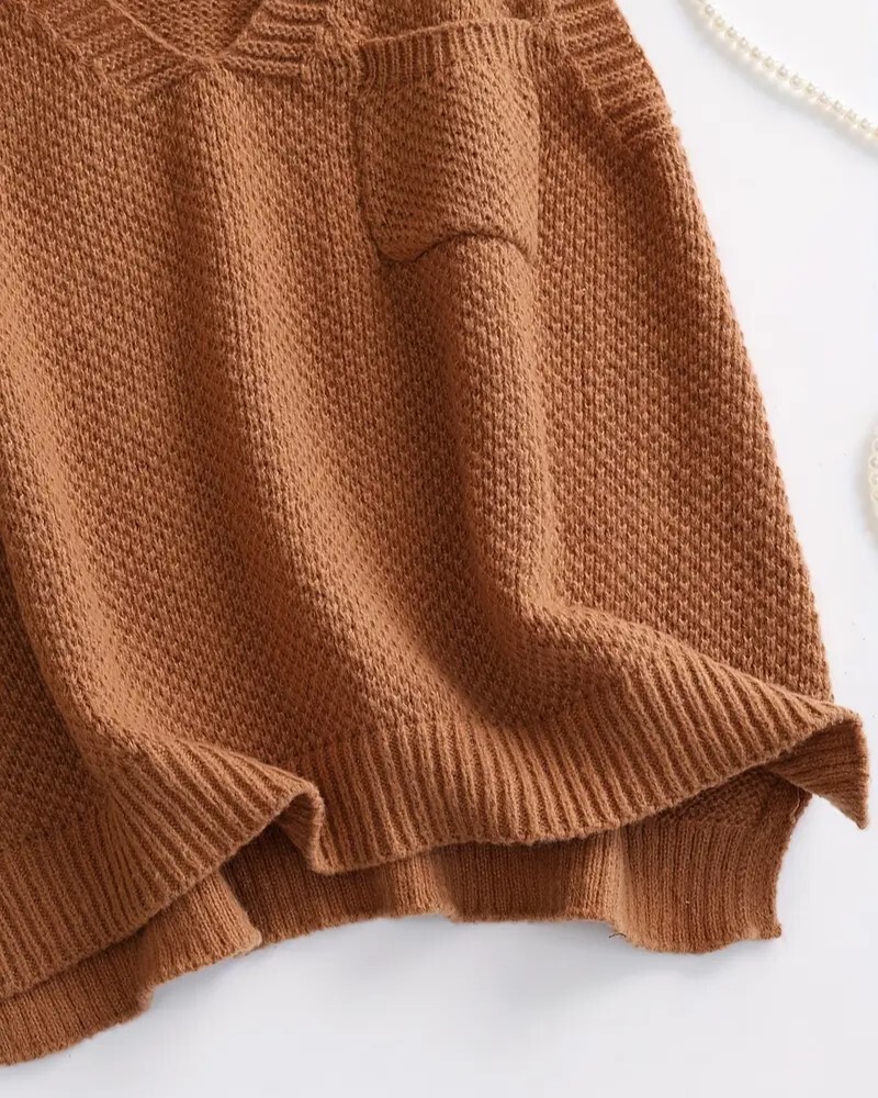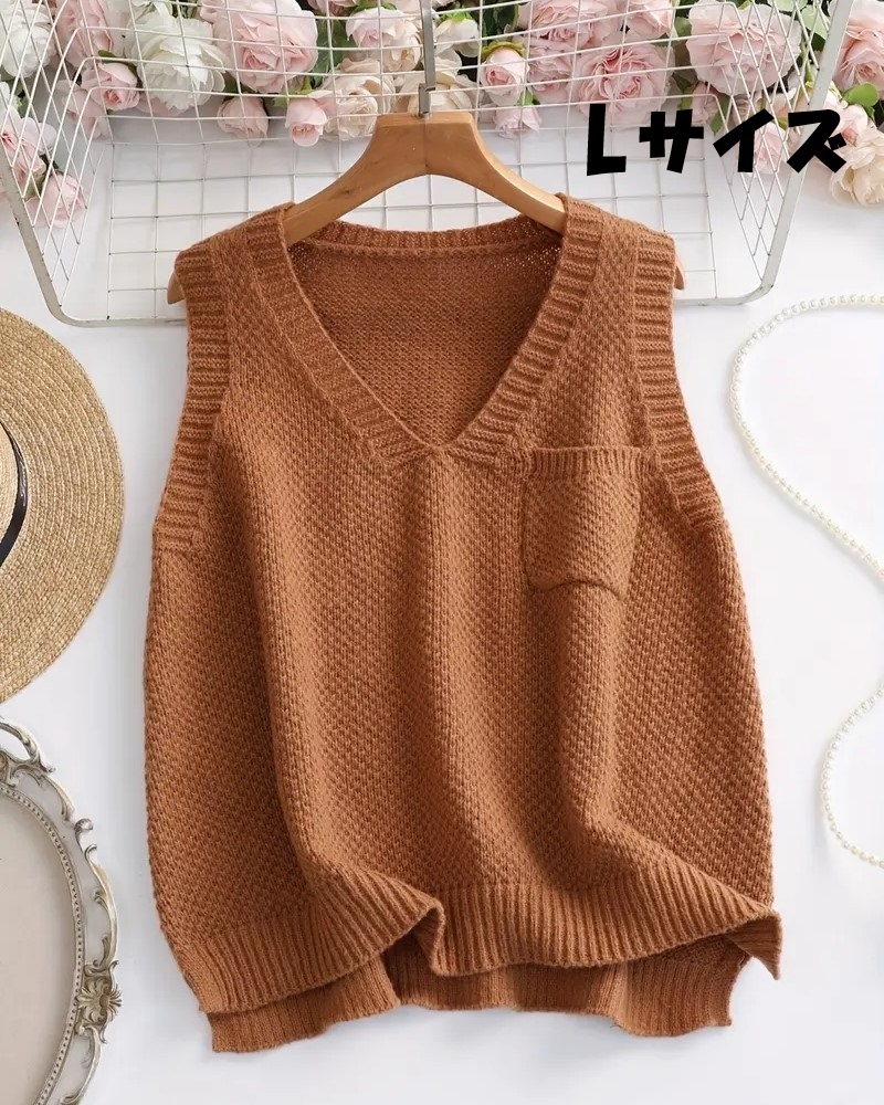 【新品】Lサイズ ニットベスト ポケット付き Vネック サイドスリット 重ね着 セーター ベスト ニット生地 ライトブラウン
