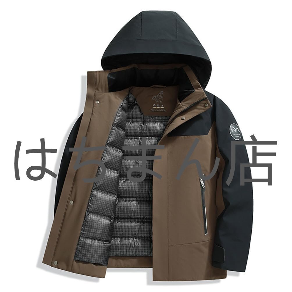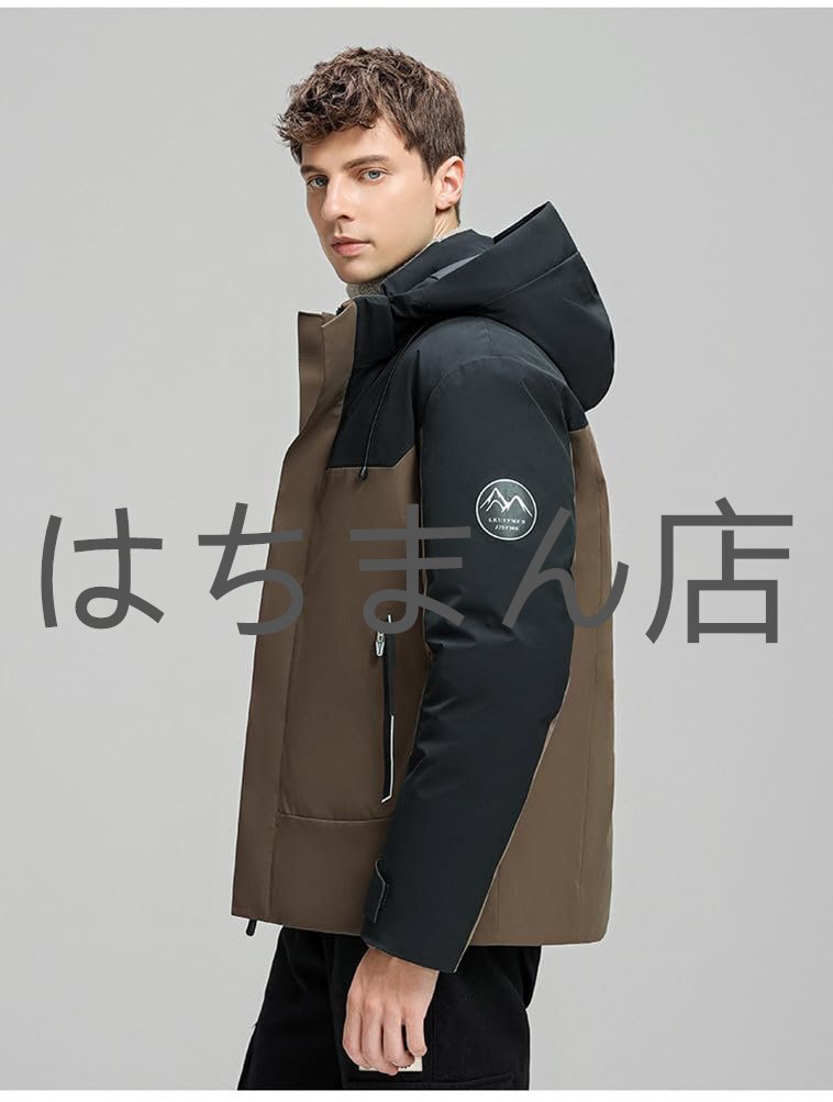 ダウンジャケット メンズ フード付き ジャケット 厚手 ダウンコート アウター 男性 ファッション 秋 冬 防寒 防風 紳士用 ブラウン M-4XL
