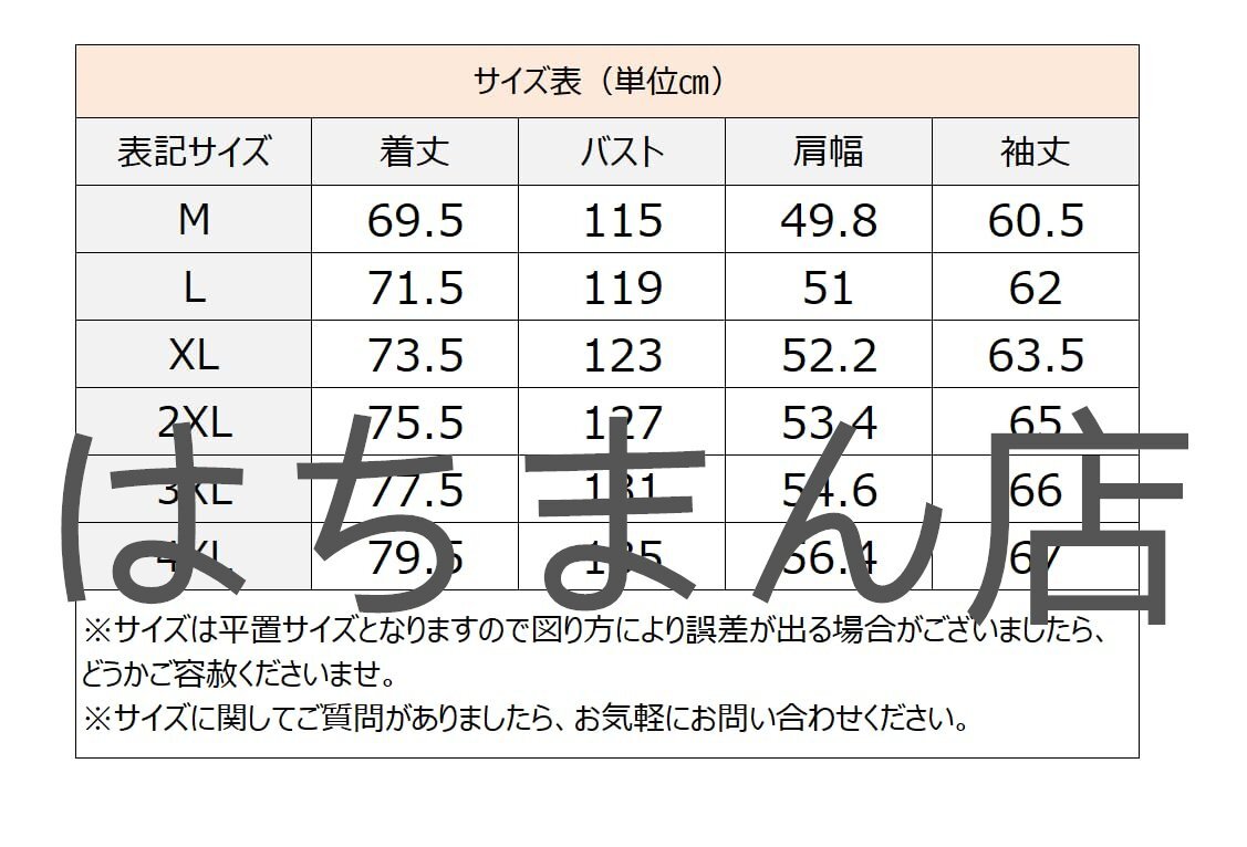 2XL 着丈75.5cm、バスト127cm、袖丈65cm、 肩幅53.4cm.店舗をご確認ください:はちまん店、他の同デザインは全て海賊版でございます、品質は保証されていません、慎重に購入してください。