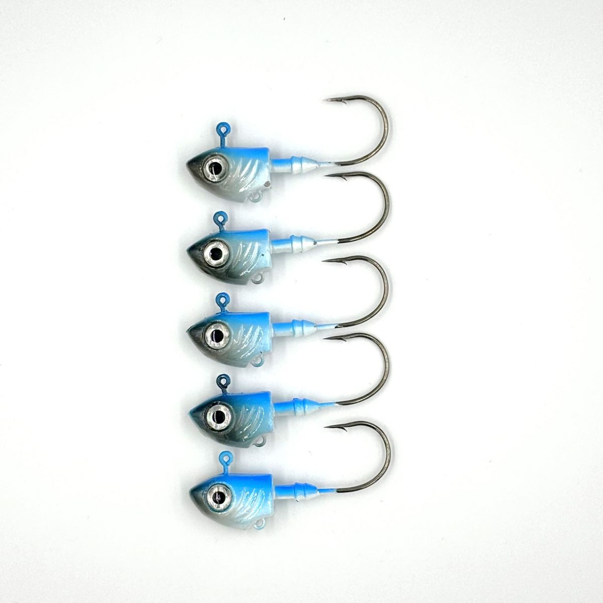 104090 マダイ ロックフィッシュ攻略に リアルジグヘッド テンヤ 40g ホワイトブルー 5個セット タチウオ ヒラメ マゴチ