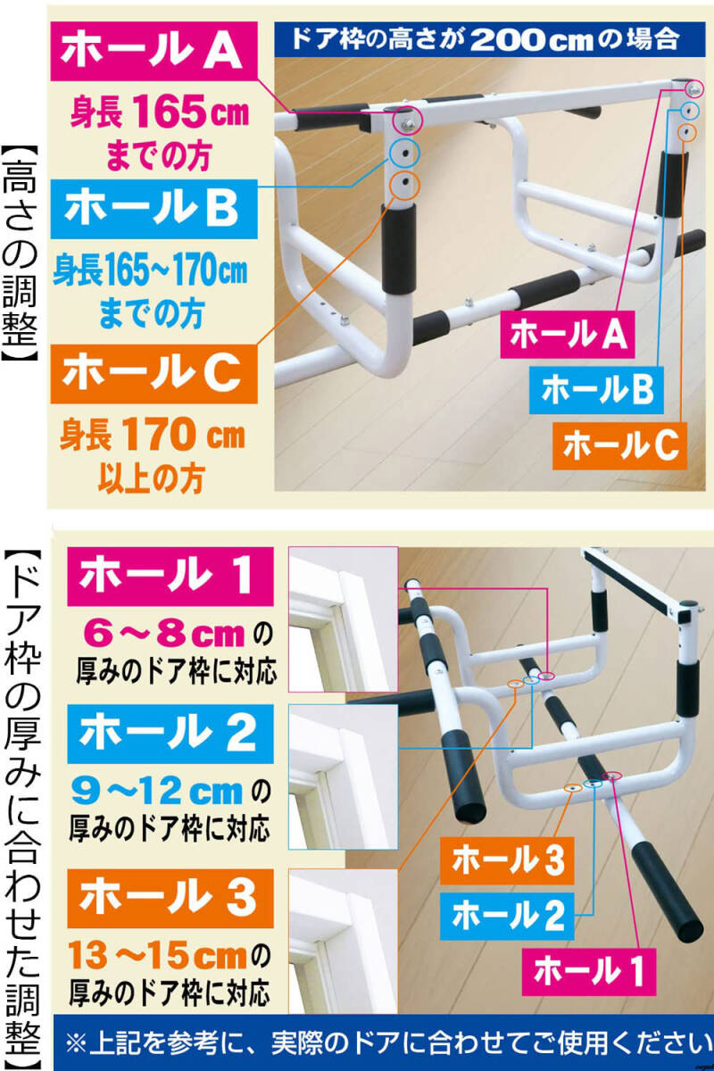日本の住宅事情に合わせた設計で、ドア枠の厚みや高さに応じて3段階で調整可能です。