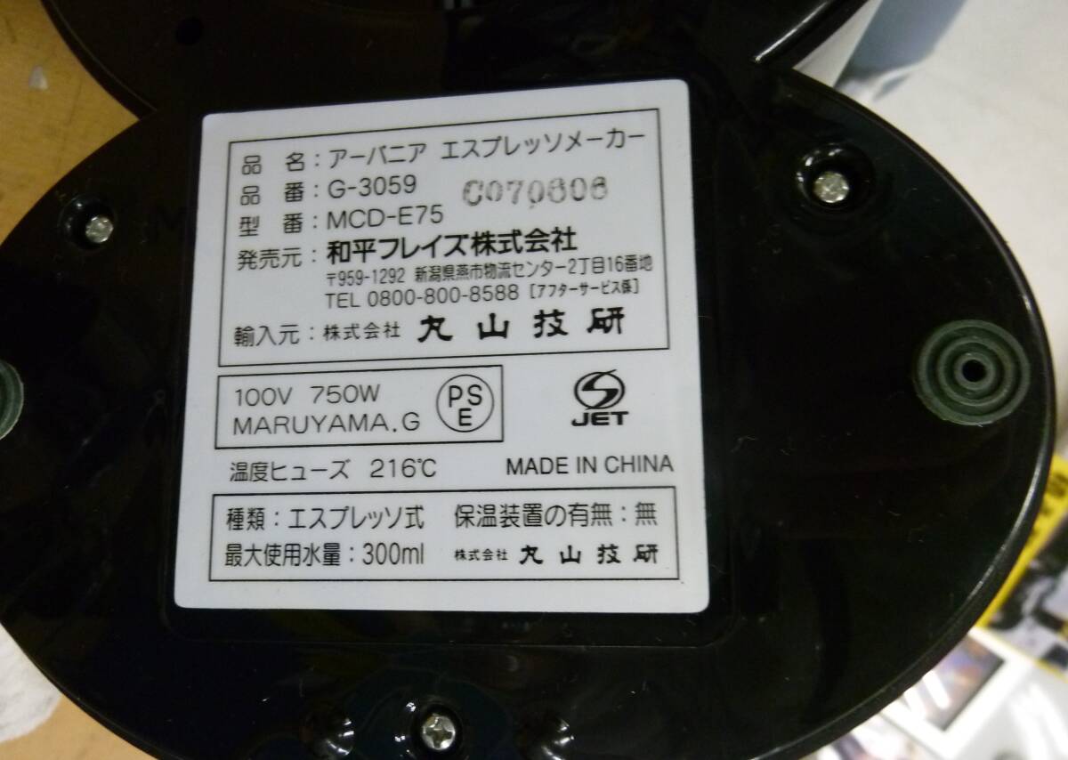 中古 アーバニアエスプレッソメーカー G-3059【R-75】送料無料(北海道・沖縄・離島・佐川急便中継料金がかかる地域は除く)