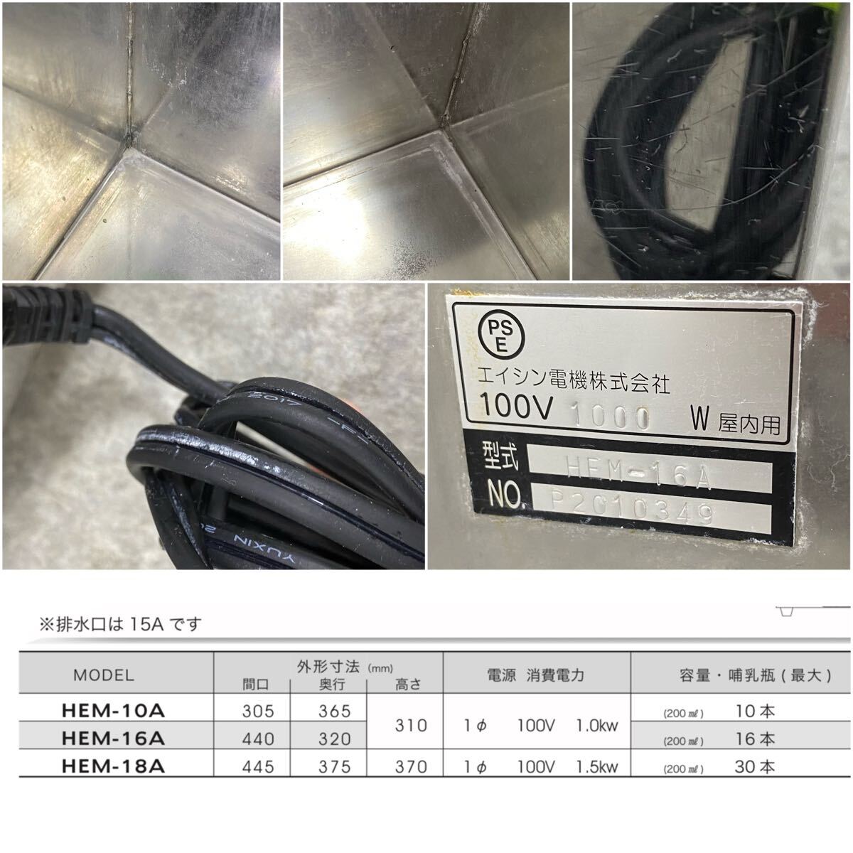 □ EISHIN エイシン ぼこぼこくん 哺乳瓶用煮沸消毒器 排水口15A 16本 HEM-16A 業務用 殺菌庫 厨房機器 厨房用品 現状品 □24111202