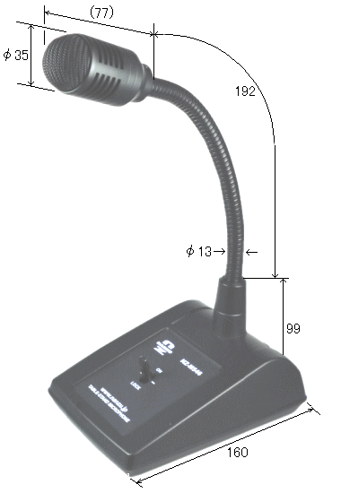電源不要のデスクトップマイクロホン、600Ωダイナミックマイク型です。レバースイッチのロック機構も付属しますので、手放し放送が可能です。マイクプラグの太さはφ6.3ダイナミック型マイクに対応した放送アンプ等でお使いいただけます。
