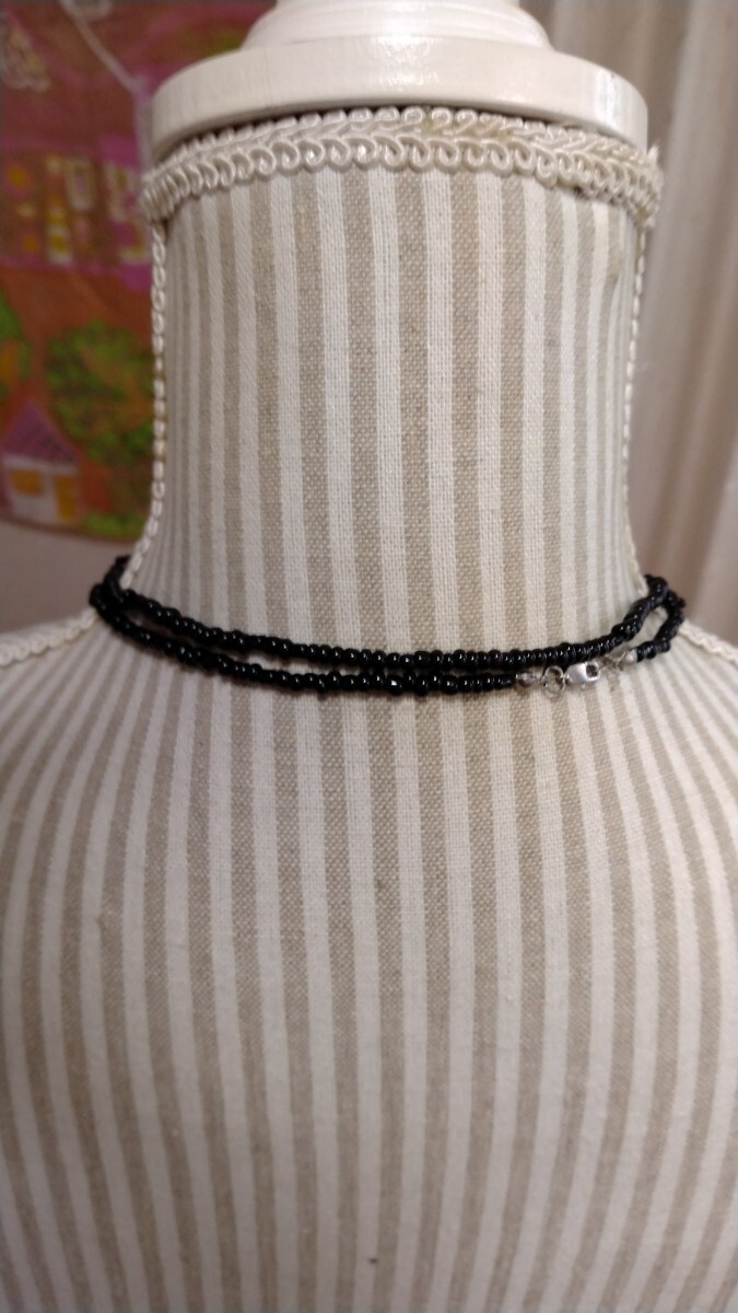 黒・小ビーズ ネックレス 2本セット 重ね付けにも