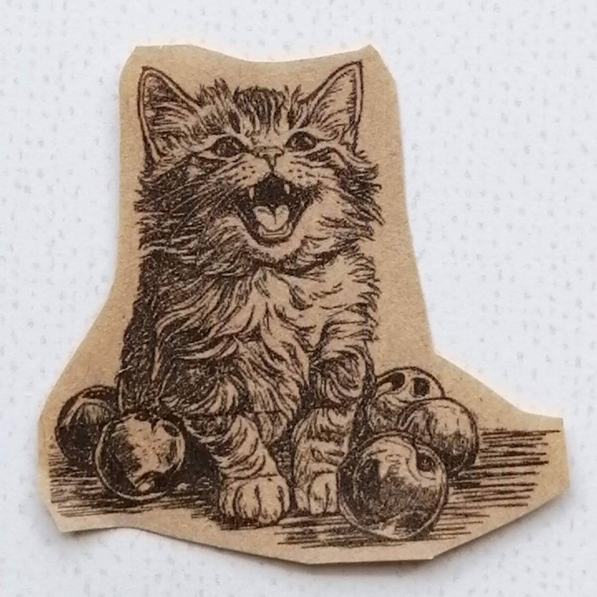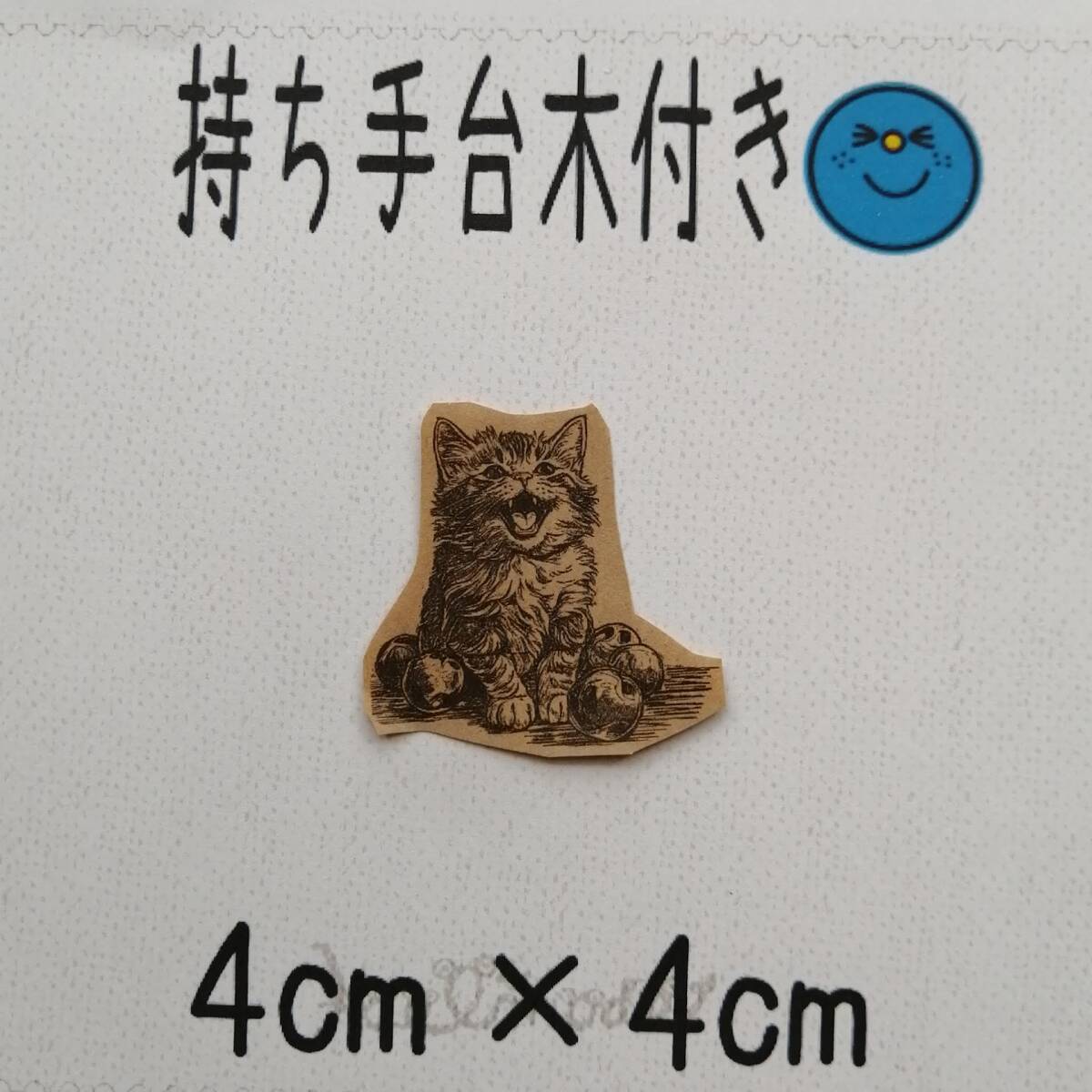 690 ねこ 木の実 はんこ ハンコ ヴィンテージ アンティーク スタンプ ゴム印 ラバースタンプ レトロ イラスト 子猫 鳴く 可愛い 猫 ネコ