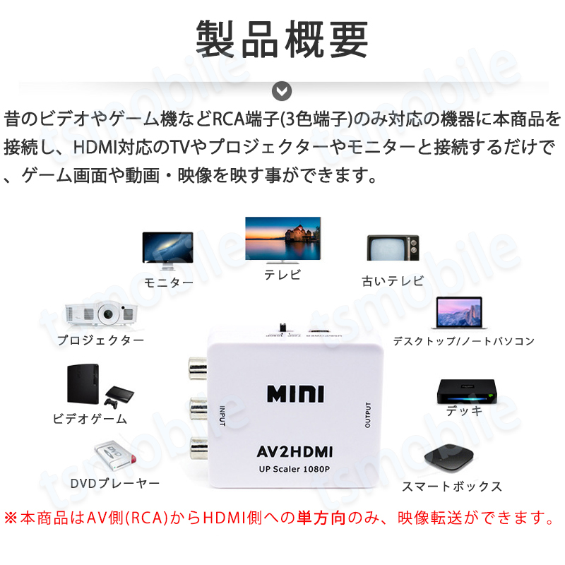 | 当製品はAVコンポジット→HDMI単方向変換コンバーターです。 |