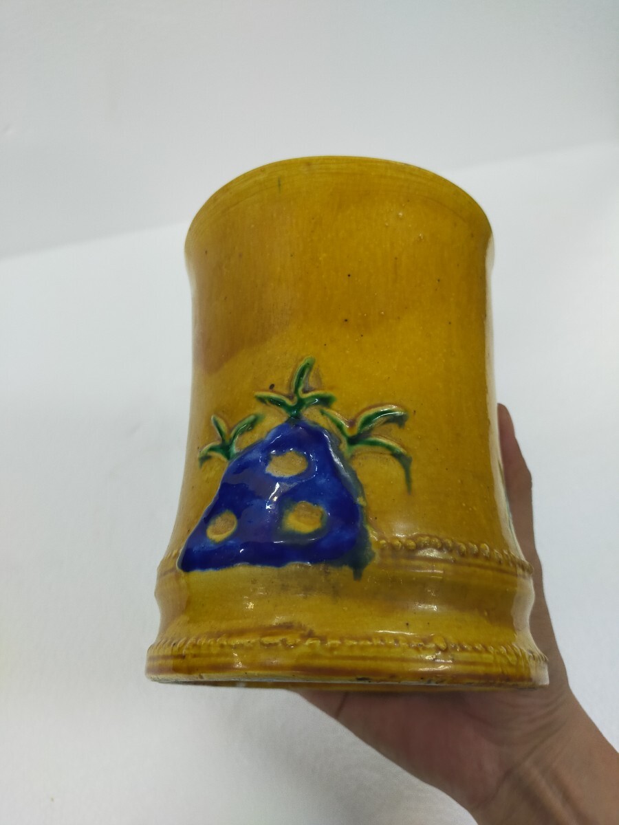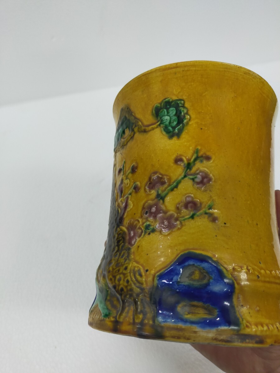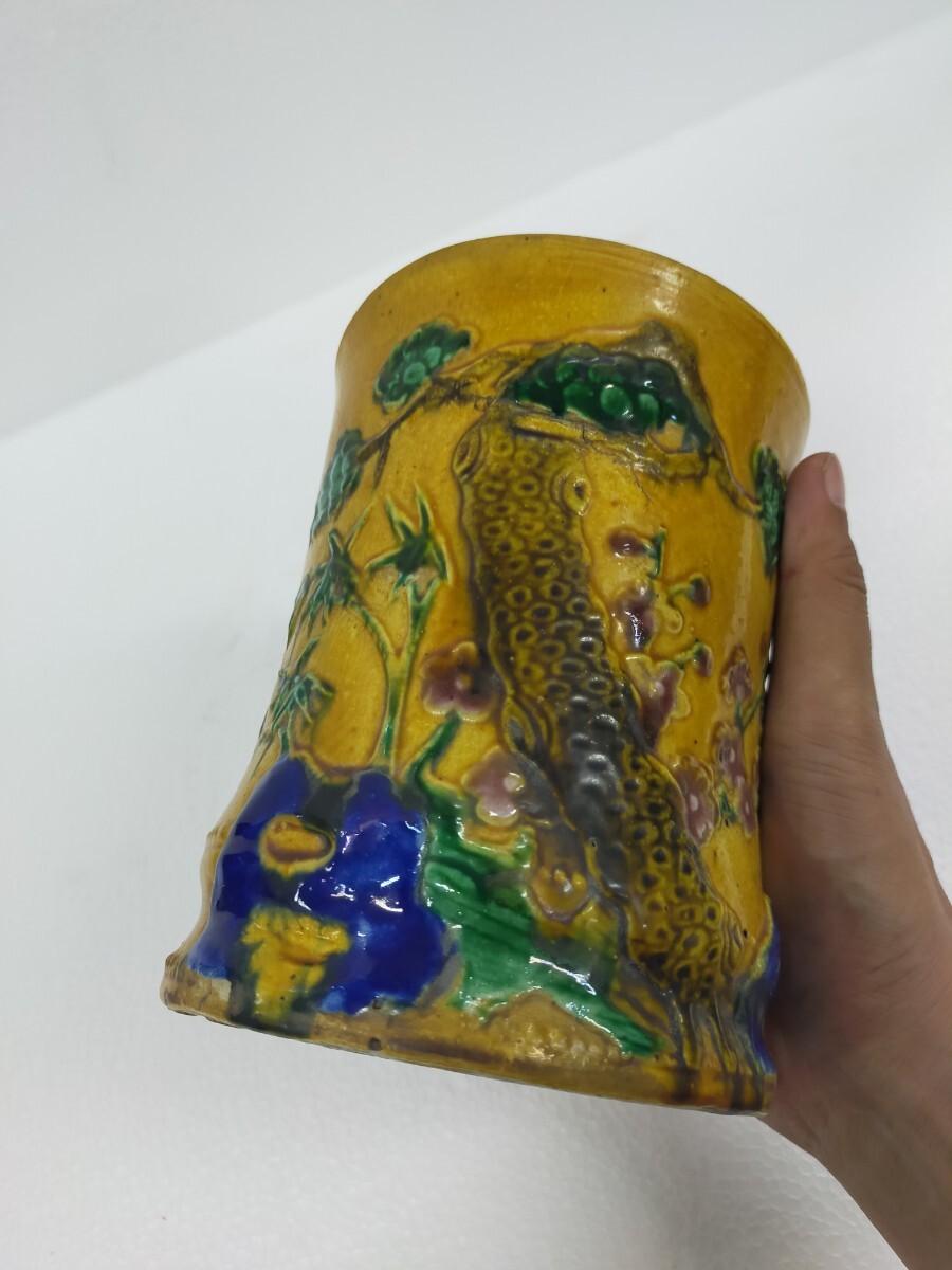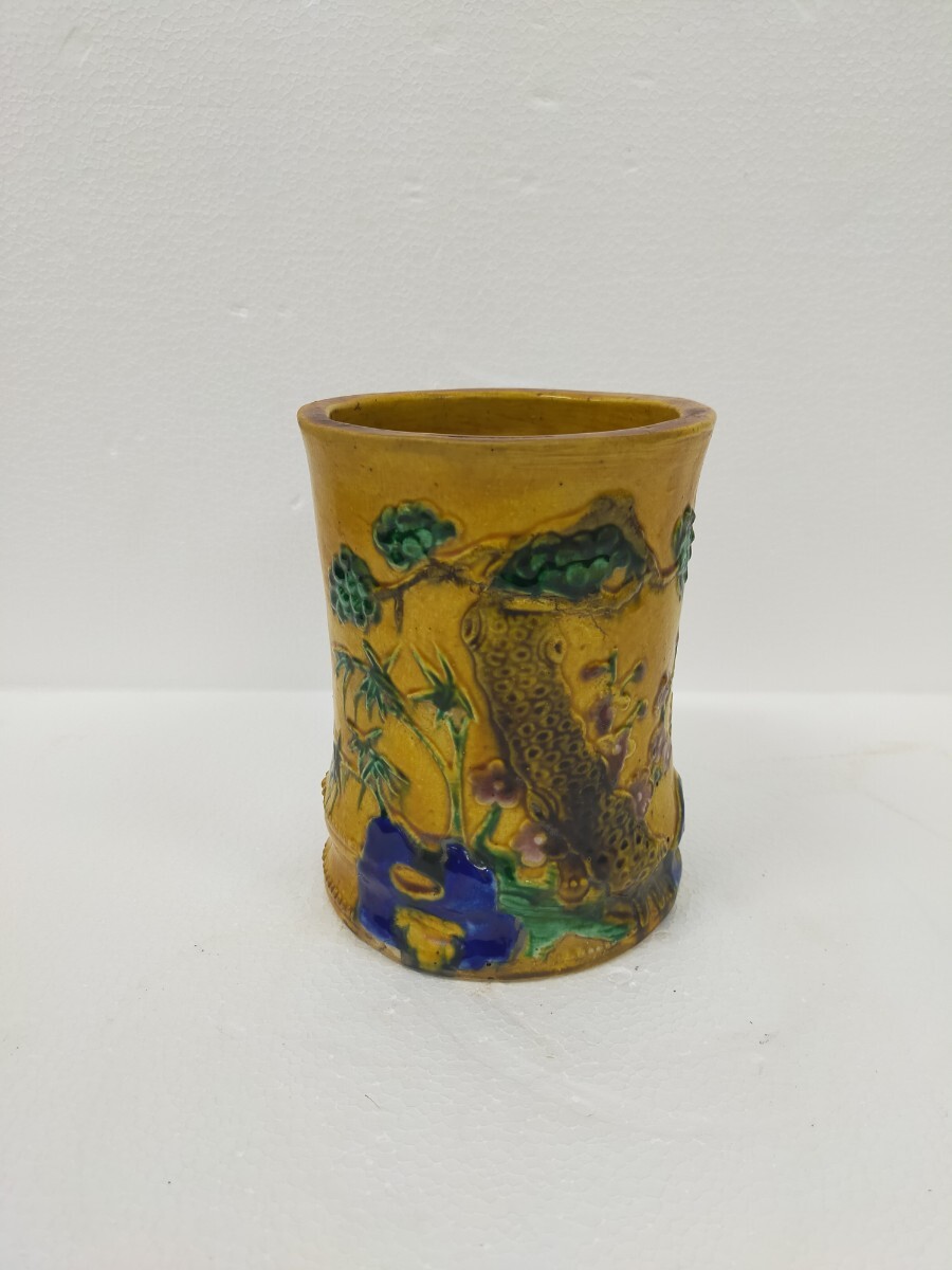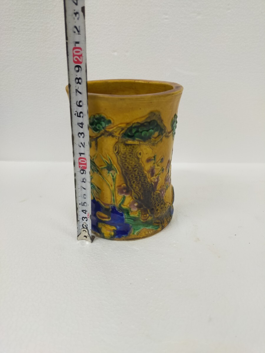 中国美術 唐物 清時代 景徳鎮 筆筒 文房具 書道具 時代物 三彩 粉彩