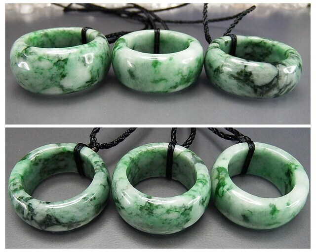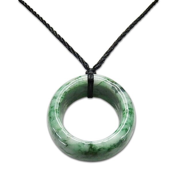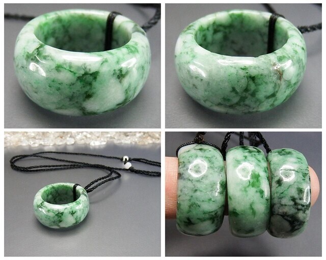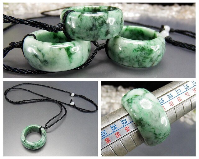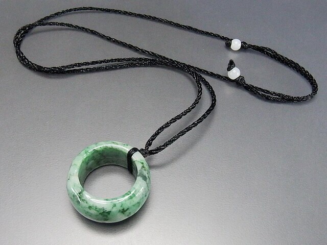 激レア濃い緑柄模様入り天然石ひすい本翡翠サムリング22号黒糸ネックレス色合い上質プライム
