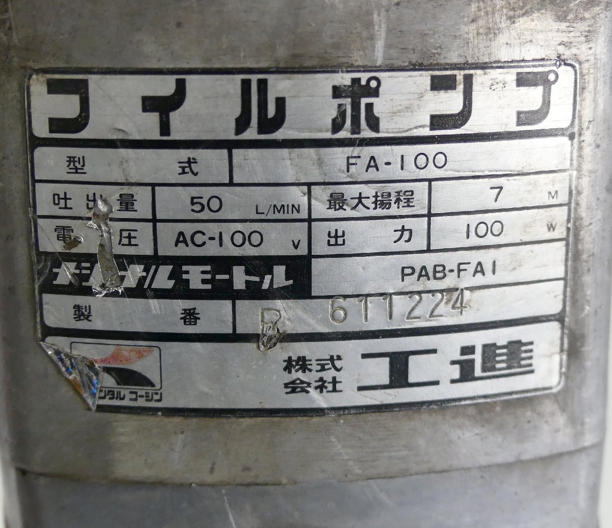 ☆KOSHIN 工進 電動ドラムポンプ フィルポンプ【FA-100】USED品☆ | |
