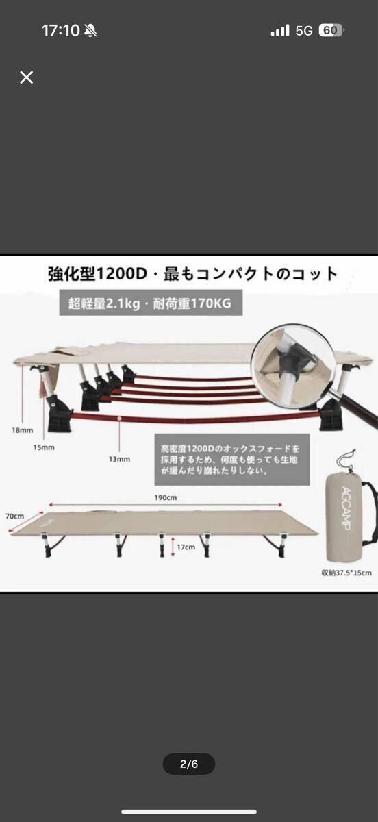 サイズ:190*70*17CM/収納サイズ:37.5*15CM ほとんどの製品よりコンパクト折りたたみベッドです。キャンプなど、もっと荷物を軽量化したい。そんな時に役立つ、収納サイズが小さなベッドです。