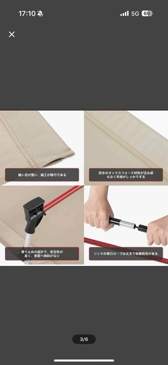高密度1200Dのオックスフォードを採用するため、何度も使っても生地が緩んだり崩れたりしない。航空用7075アルミニウムを採用し、耐荷重が170kgので超安心です。寝転しても座っても強度に問題はありません。