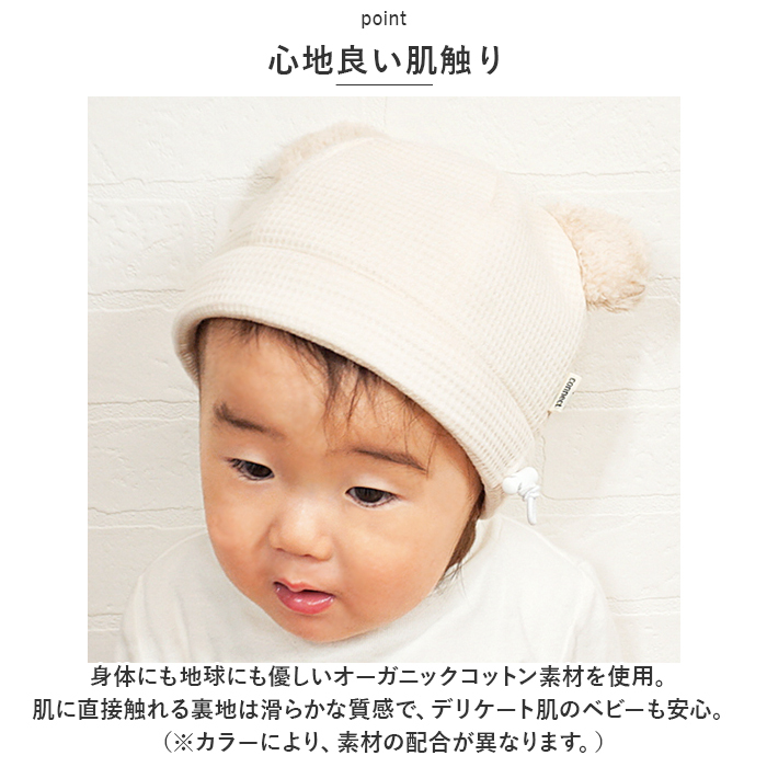 | 素材 | 【ワッフル/レース】 綿100%(オーガニック) [ボア]ポリエステル100% 【オフホワイト/杢グレー】 綿88%、ポリエステル12% [裏地]綿100%(オーガニック) |
