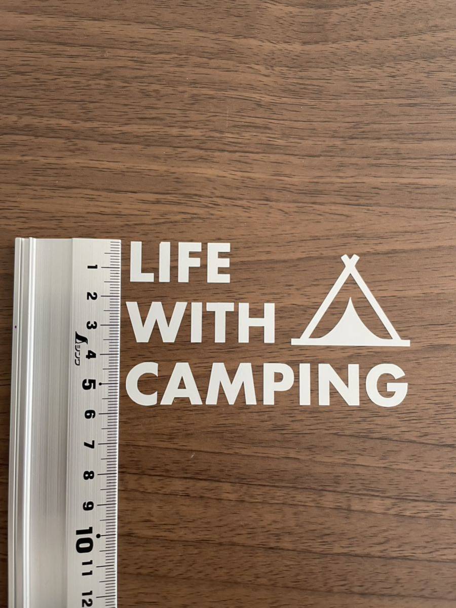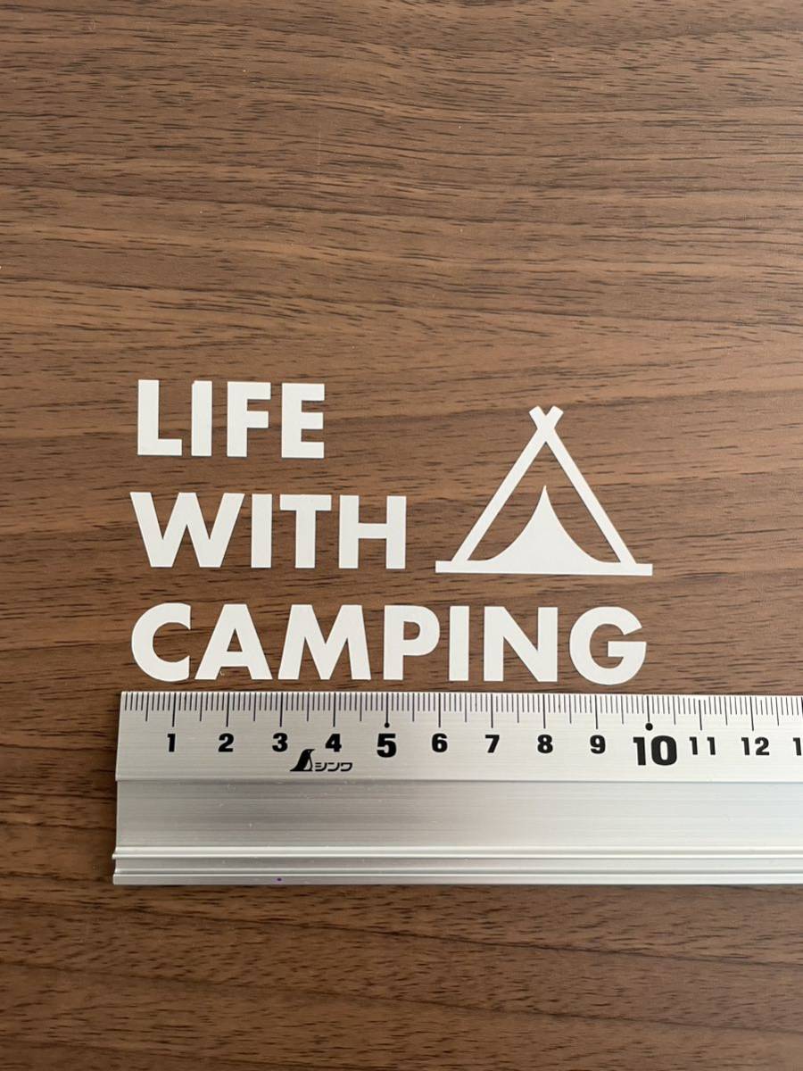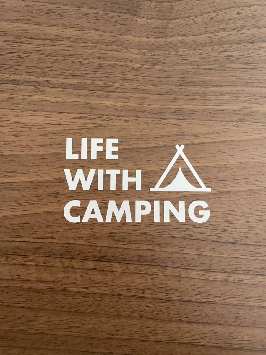 【送料無料】 テント LIFE WITH CAMPING カッティングステッカー キャンプ アウトドア 白【新品】