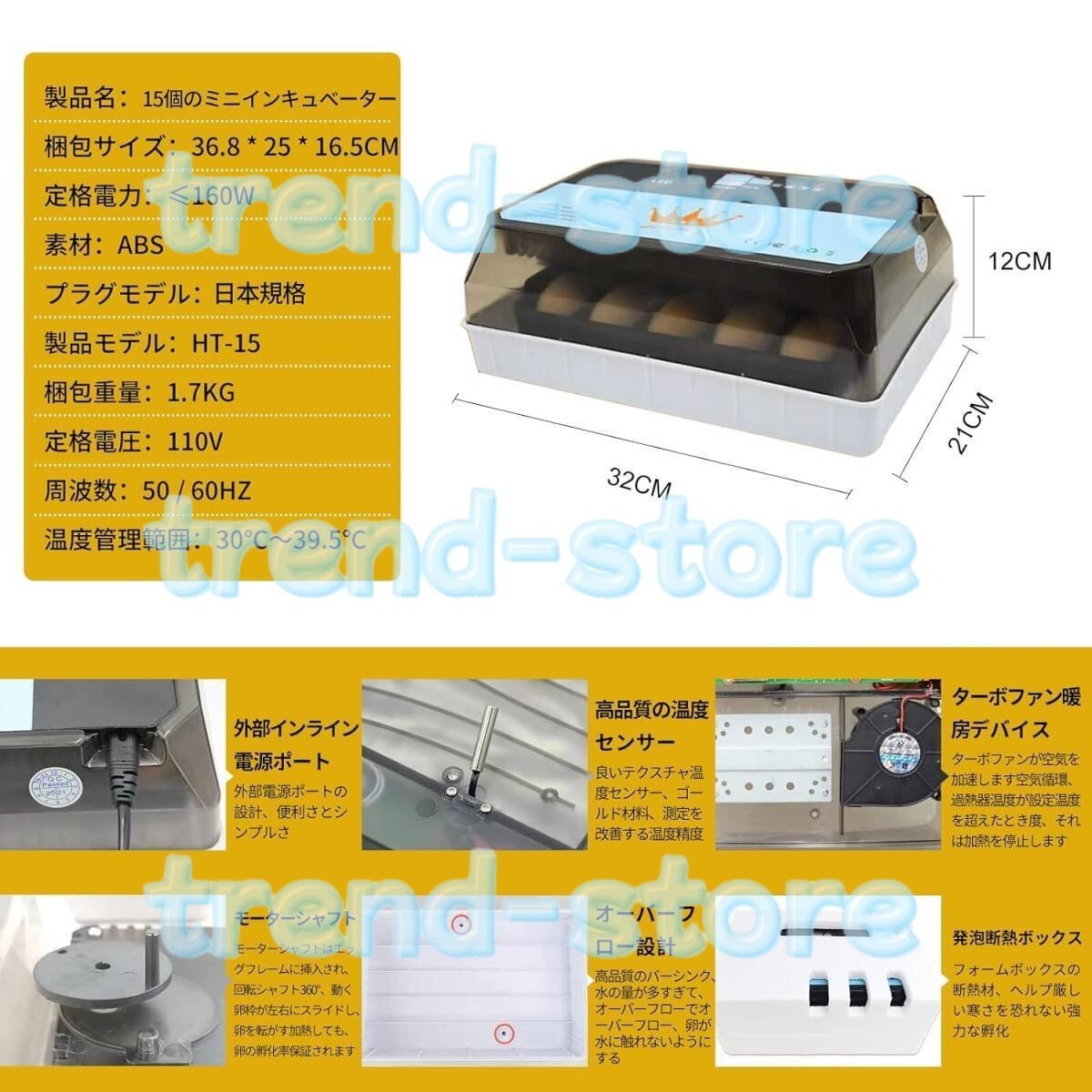 自動孵卵器 検卵ライト内蔵 インキュベーター LED液晶 孵化率アップ 鳥類専用ふ卵器 自動転卵式 ヒヨコ生まれ 15個 自動温度制 実験用