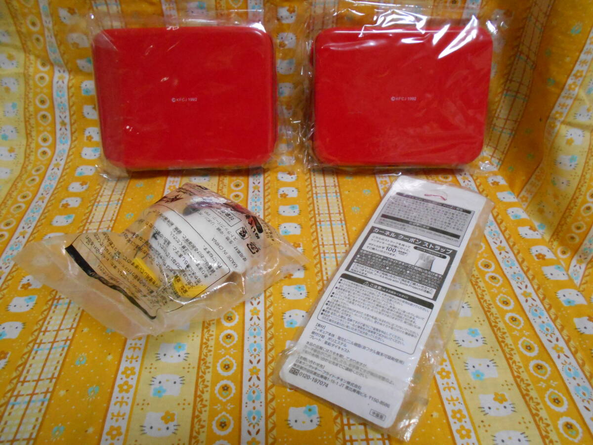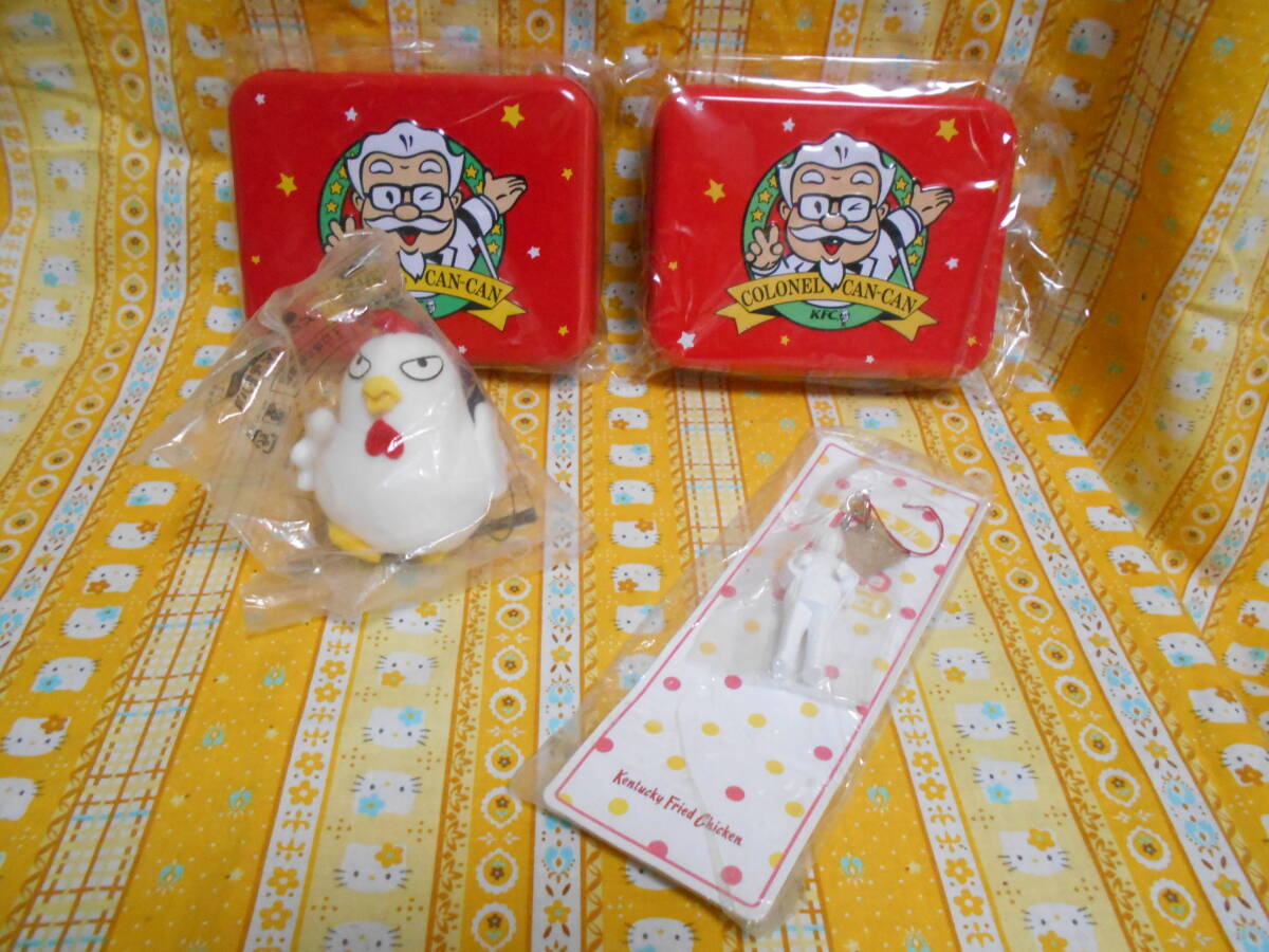 ♪ケンタッキー美品缶製小物入れ2個&チキンぬいぐるみストラップ&カーネルサンダースフィギュアストラップ