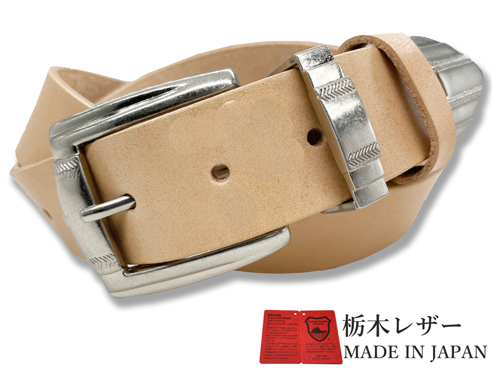 新品 栃木レザー カジュアルベルト Mサイズ プンターレ 付き ウエスタン ベルト メンズ 本革 牛革 35mm ナチュラル ヌメ w070-M-NATURAL