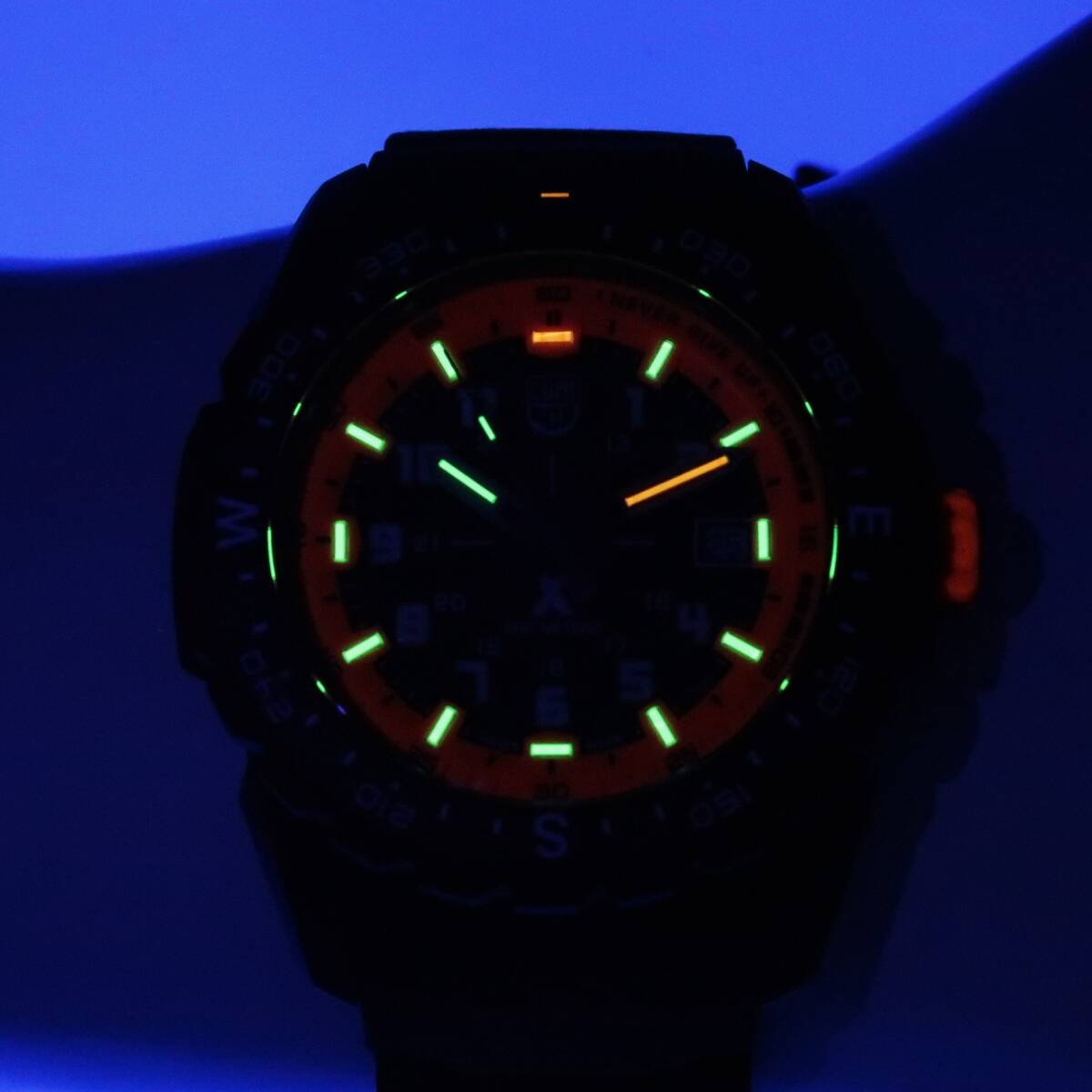 25年以上自己発光する「ルミノックス・ライト・テクノロジー」は、一般的な蓄光とは異なり、外光やバックライトを必要とせず、暗闇でも正確に時間を把握できます。その視認性と頑丈さから、アメリカの特殊部隊NAVY SEALSやSWAT、戦闘機パイロットに正式採用されています。