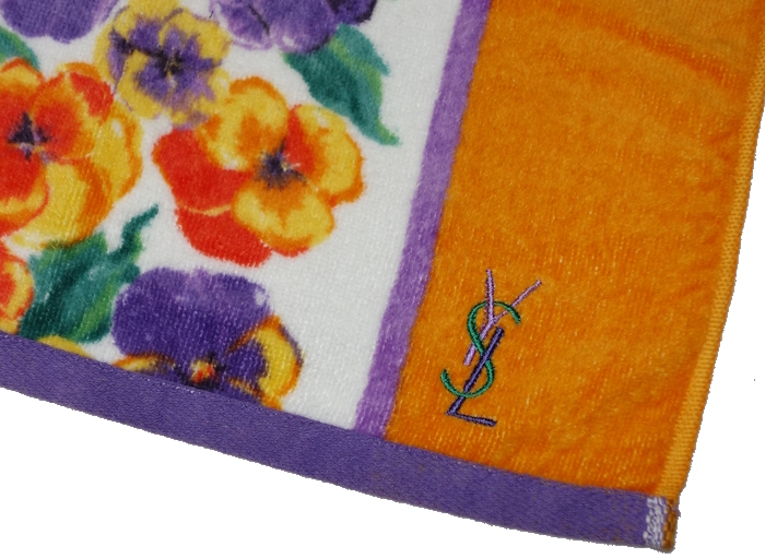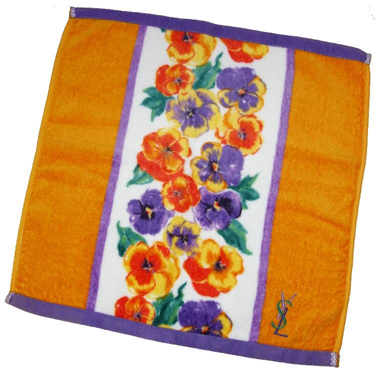 イヴサンローラン / YSL YVES SAINT LAURENT★大判タオルハンカチ/ハンドタオル★オレンジx花柄★内野★日本製