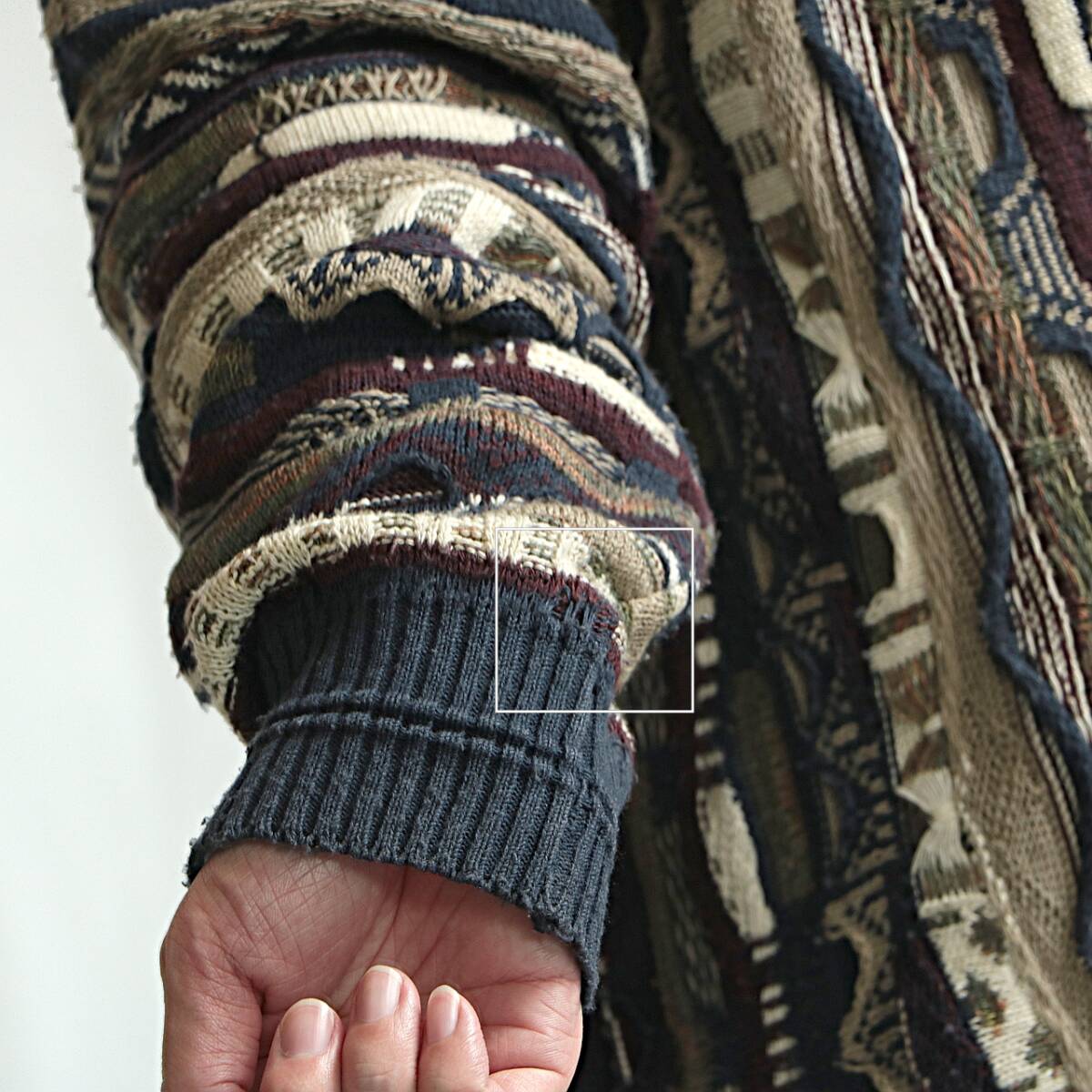 古着の為、使用感は御座います。全体的にやや毛玉。画像にある部分的に糸の飛び抜け。袖口部分のほつれ。