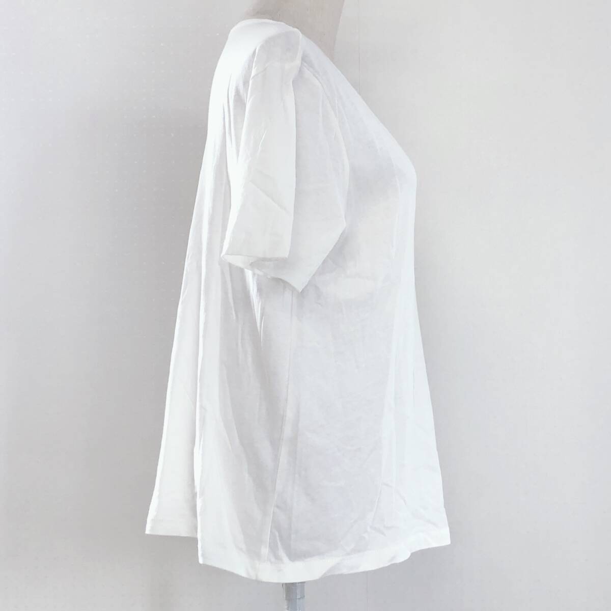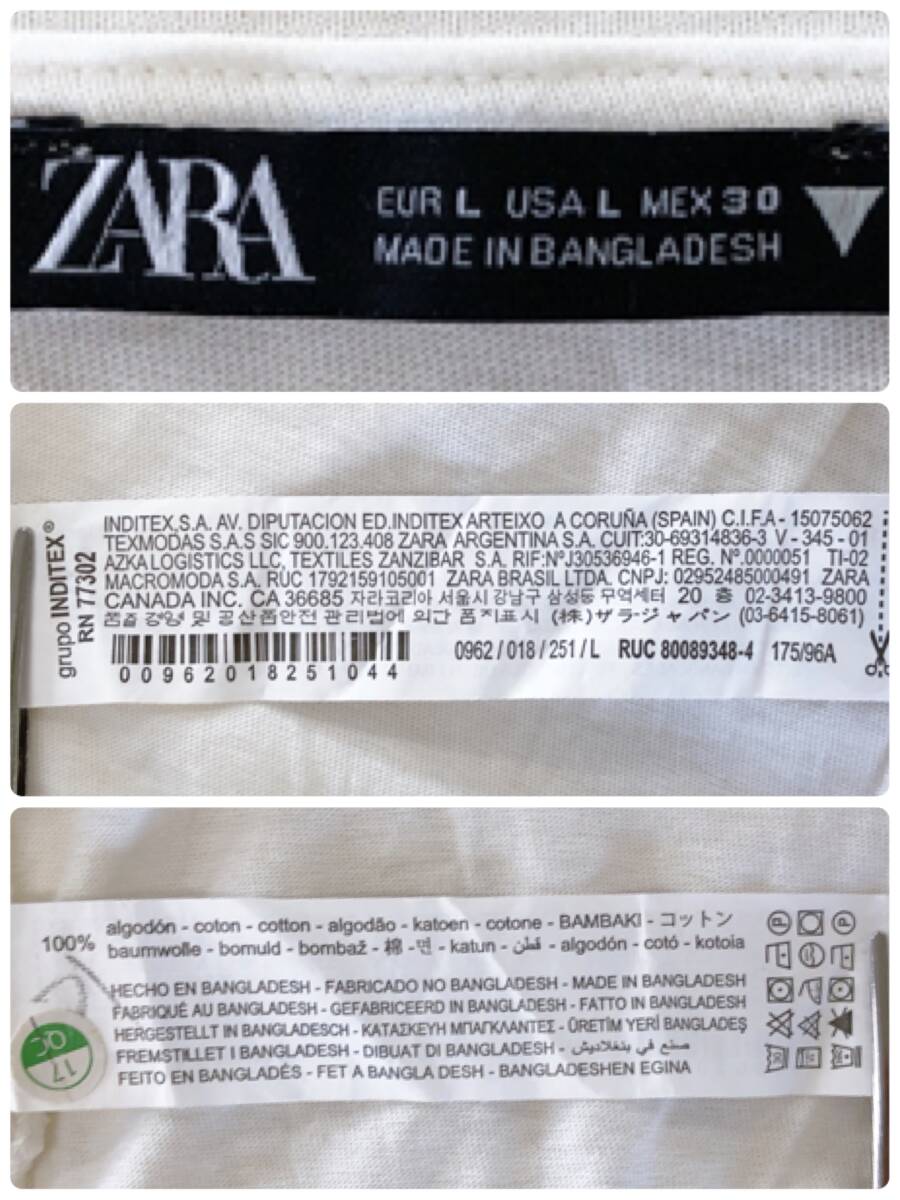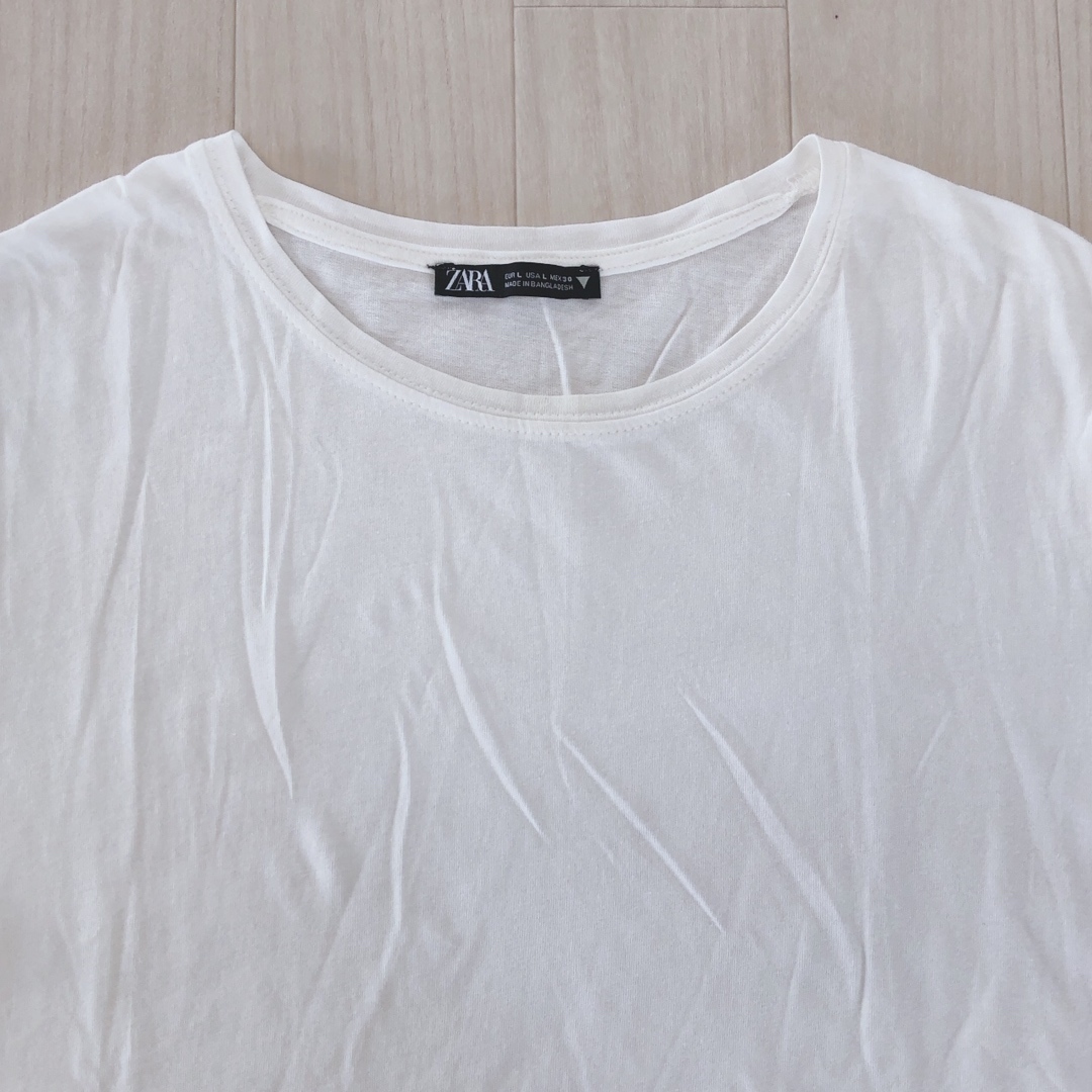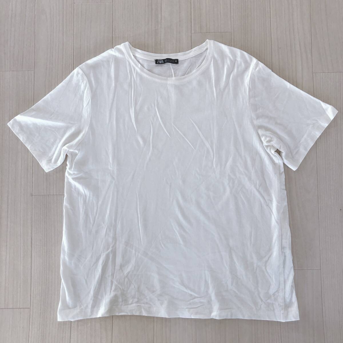 Y1423 ZARA レディース トップス シャツ 半袖 薄手 伸縮性 丸首 L ホワイト 白 綿100% シンプル カジュアル おしゃれ 涼しげ 夏