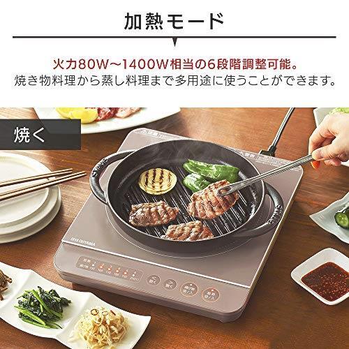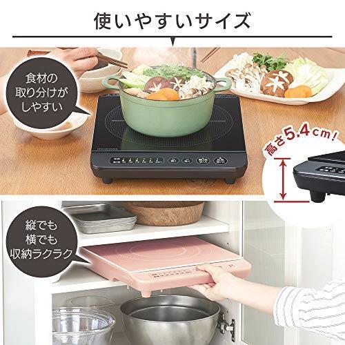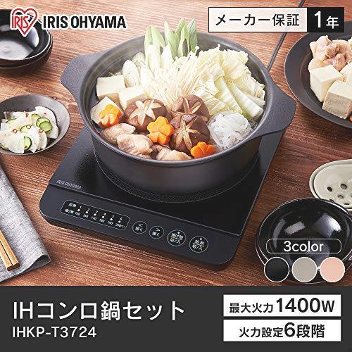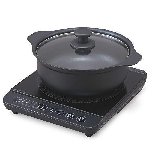 | ブランド:アイリスオーヤマ(IRIS OHYAMA) カラー:ブラック サイズ:3)ブラック すぐにお鍋ができるIHコンロ×鍋セット。 直径24cmの専用鍋がついます。 コンパクトな卓上タイプ。 火を使わないので、安心して料理を楽しめます。 最大火力1400Wのハイパワーと2種類のモード選択で、料理の幅が広がります。 ◆加熱モード 火力80W~1400W相当の6段階調整可能。 焼き物調理から蒸し料理まで多用途に使うことができます。 ◆揚げ物モード 温度調整が難しい揚げ物調理も、150~200℃の6段階で設定可能。 安心して使える安全機能 ・なべ検知機能 ・なべなし検知機能 ・小物検知機能 ・切り忘れ防止機能 ・トッププレート過熱防止機能 フラットなガラストップでお手入れ簡単。 汚れてもサッと拭くだけですぐキレイに。 商品サイズ(cm)<IHコンロ>幅約28×奥行約32.6×高さ約5.4<鍋>直径24cm、満水容量3.4L 本体重量:<IHコンロ>約2.2kg<鍋>約1.3kg 電源:AC100V(50/60Hz) 定格消費電力:1400W 火力調節/加熱モード6段階(火力):80W相当~1400W、揚げ物モード6段階(油温):約150℃~約200℃ | |||