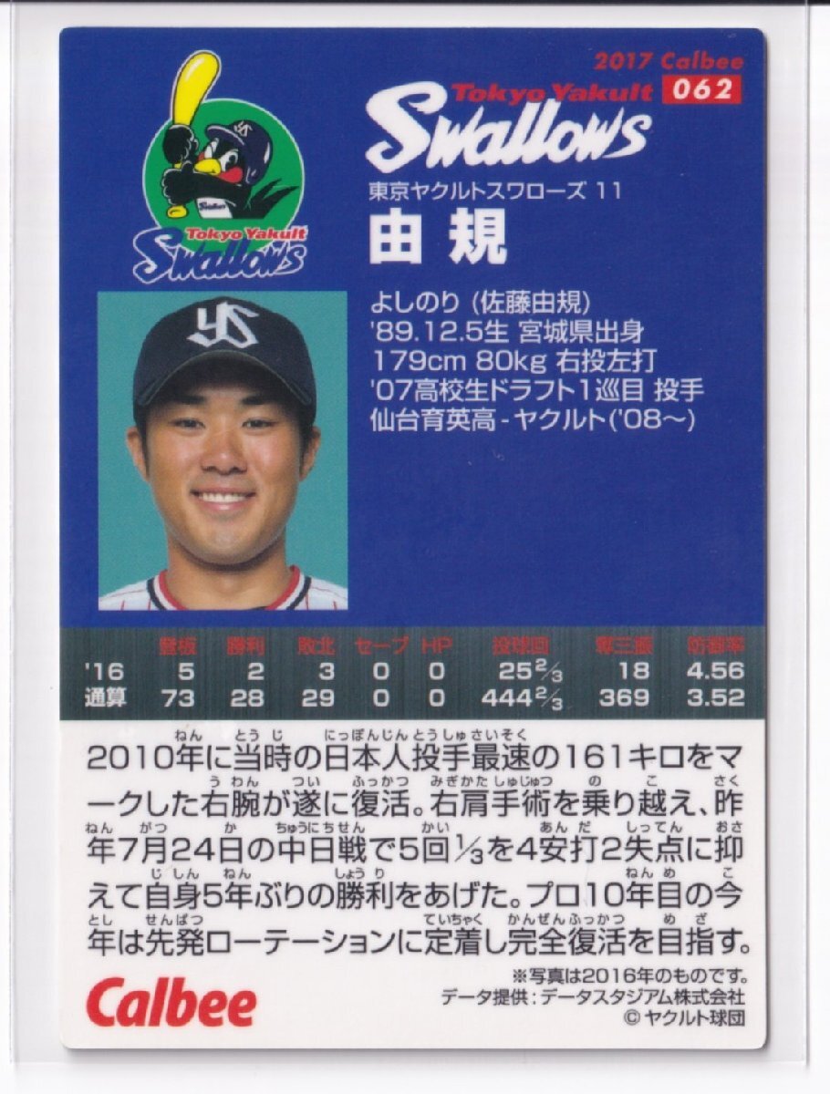 2017プロ野球チップス第1弾 62 由規(ヤクルト)