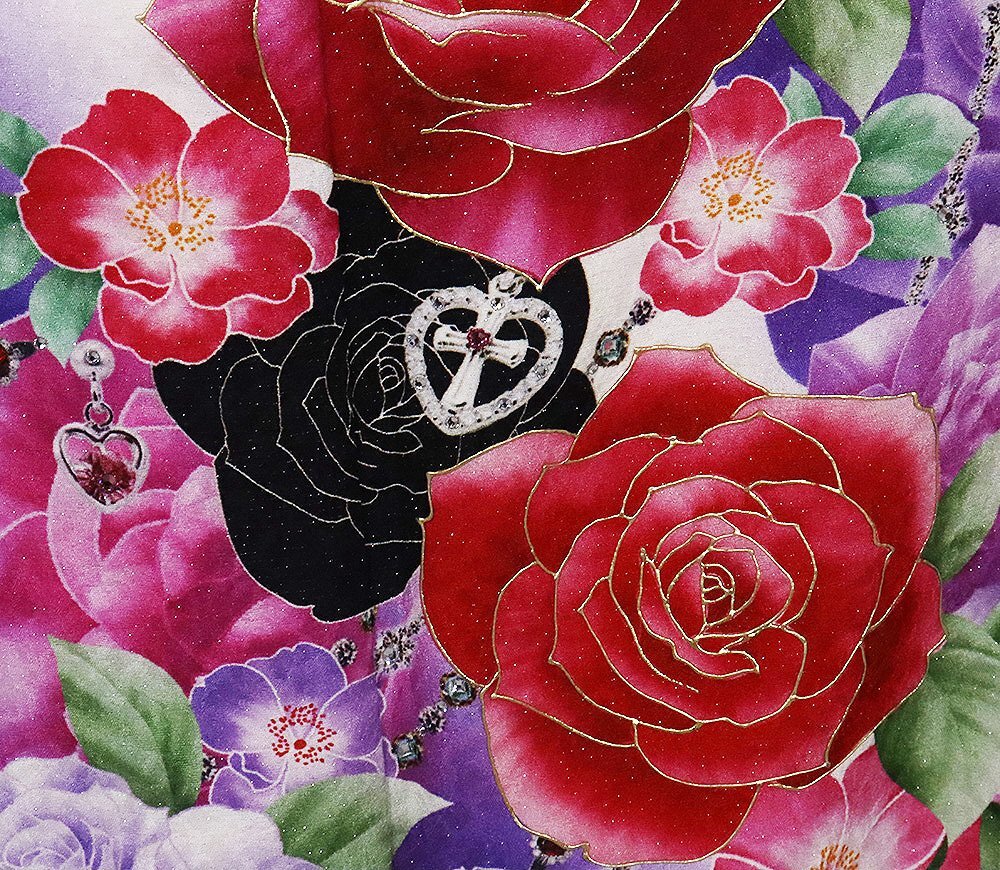 | 色・柄 | 振袖 袷 丹後縮緬地 薄いクリーム色・黒・紫・暈し・金糸通し地 十字架ペンダントトップ・チェーン・薔薇・蝶 スパンコール入り (写真では上手く色が出ない場合があります。ご了承下さい) 写真の枚数が多いので一度パソコンでご覧ください。 |