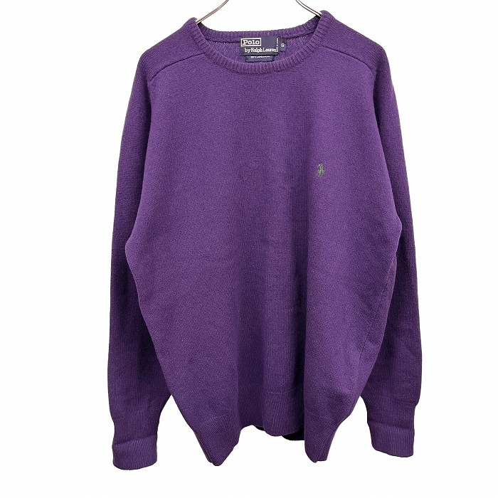 商品タイトル | ポロバイラルフローレン Polo by Ralph Lauren ニット セーター フリーダムスリーブ ロゴ刺繍 長袖 ウール100% S パープル 紫×緑 メンズ |