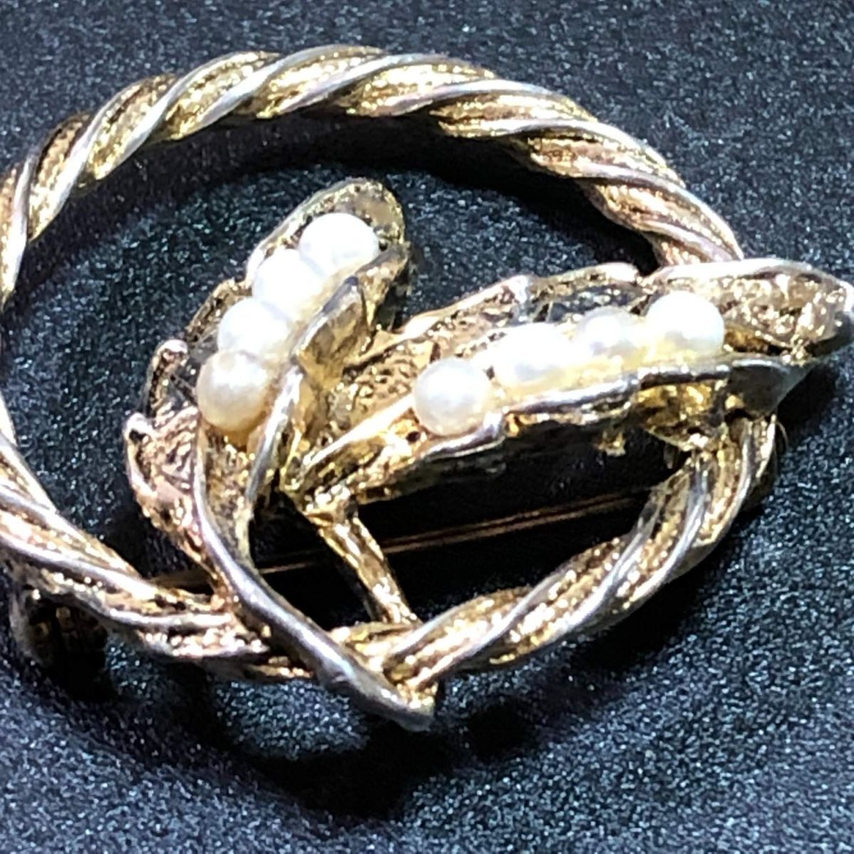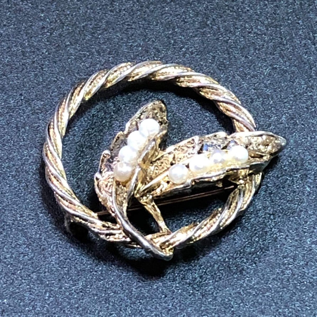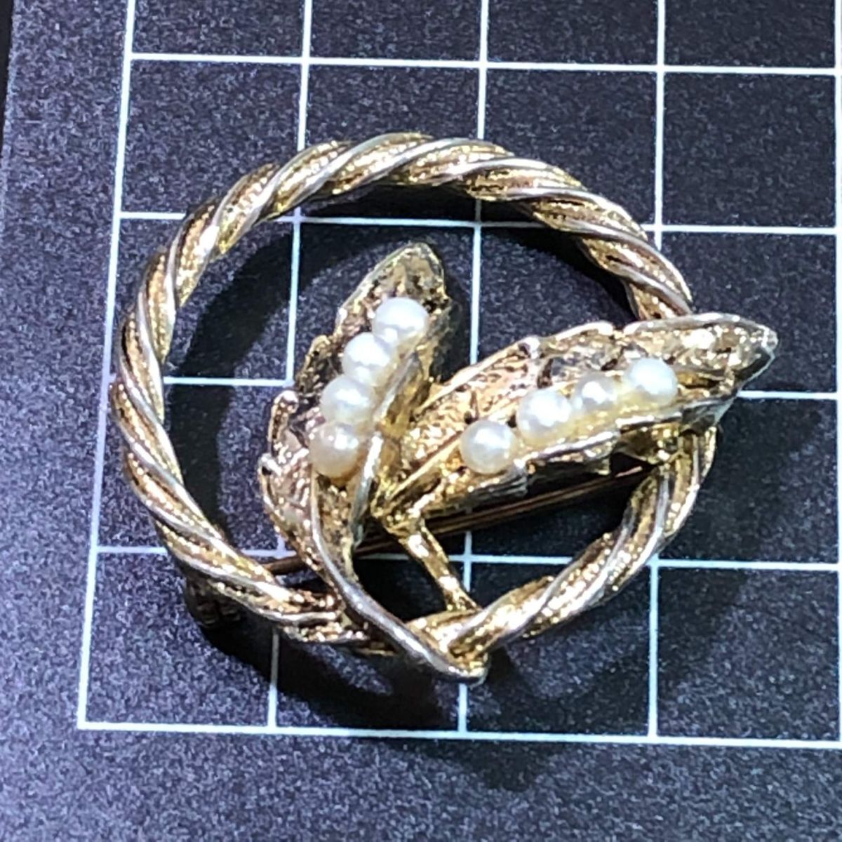 ビンテージ ブローチ モダンデザイン! サークル パール ゴールドクラシカル ヴィンテージ バッジ AKS296