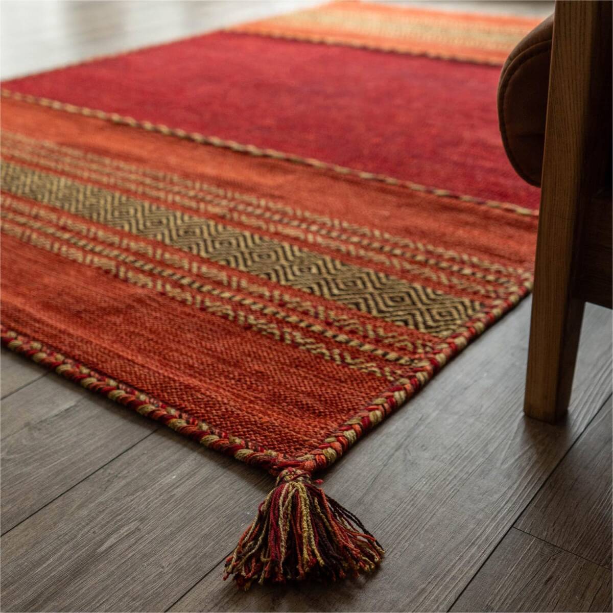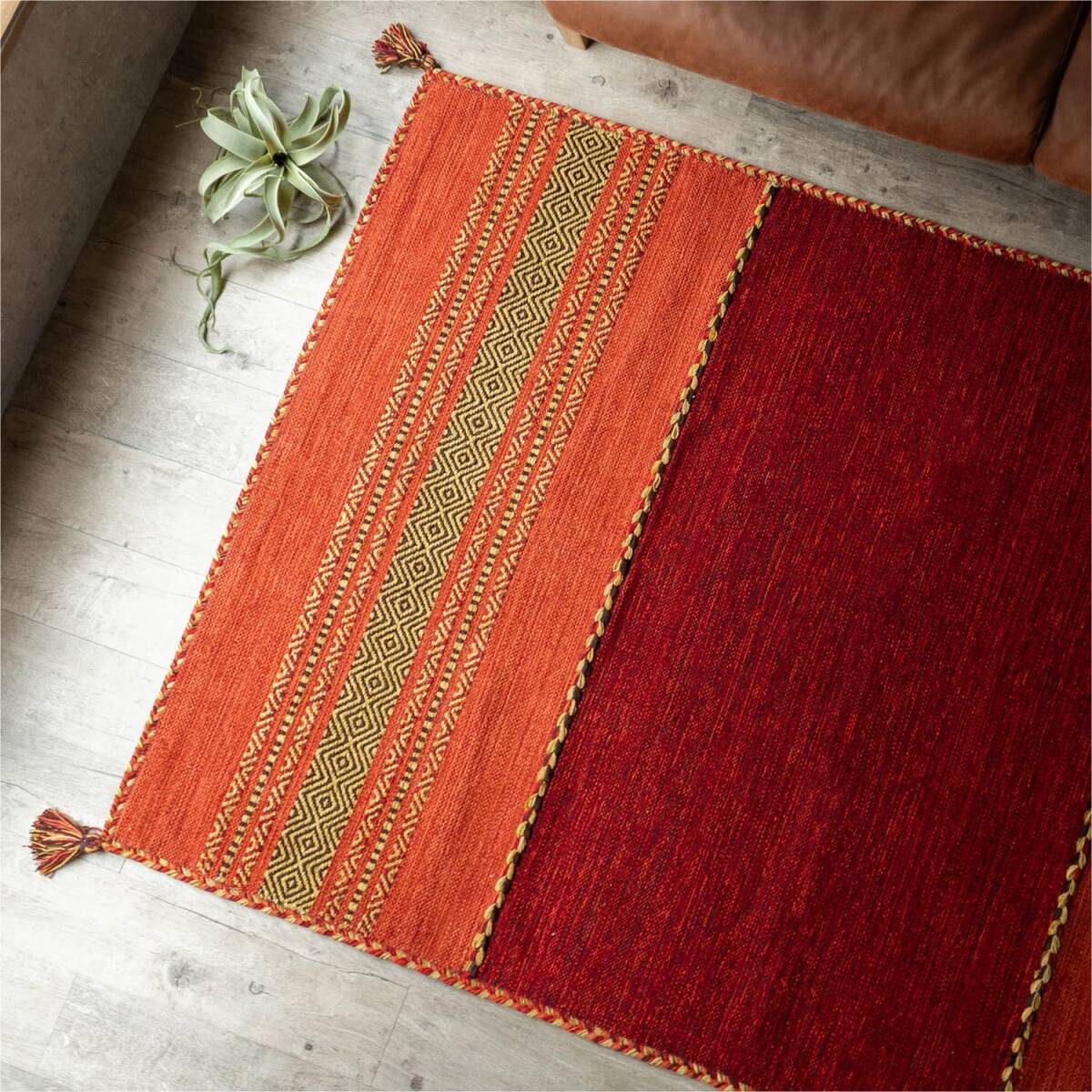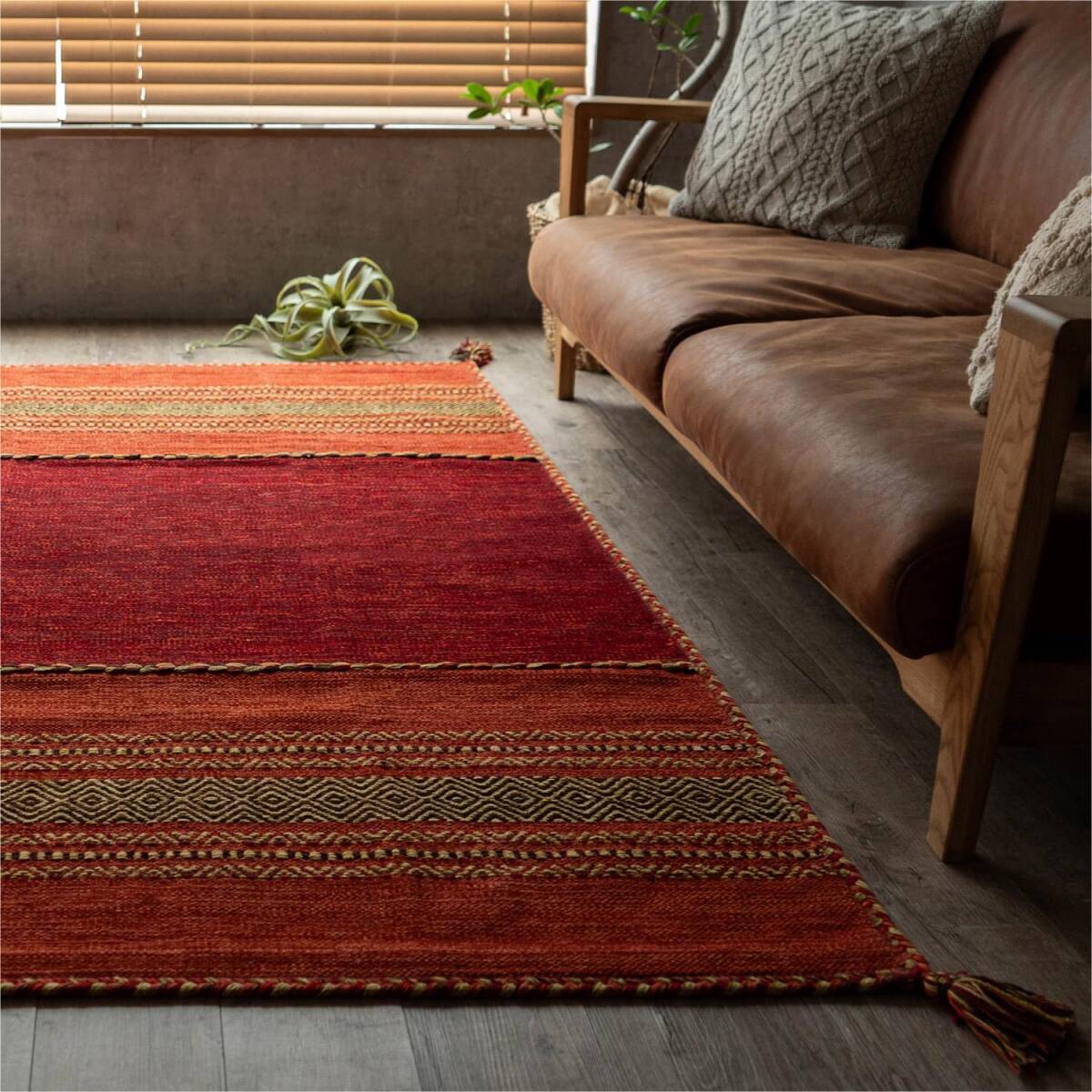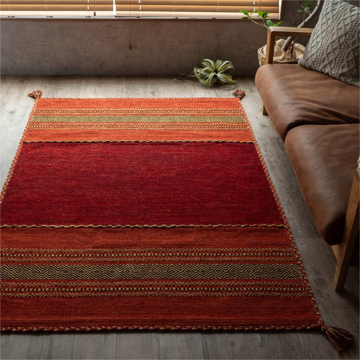 [送料込み] 絨毯 ラグ カーペット 幾何学 アジアン ラグマット インドキリム 190x240 3畳 レッド 赤 インド綿 リビング ダイニング