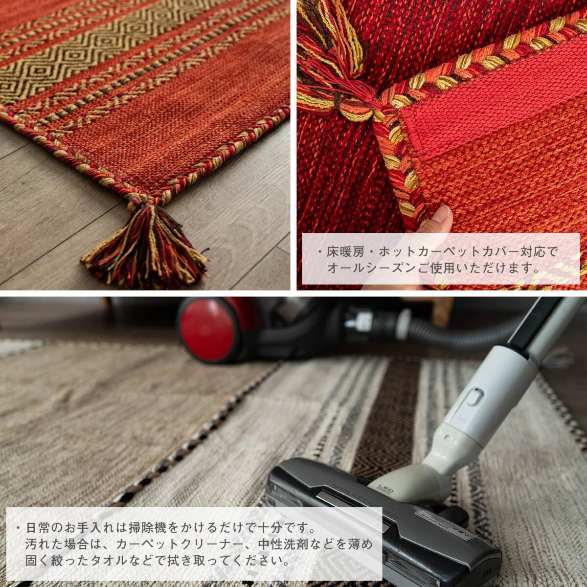【備考】手洗い可(洗濯機、乾燥機は不可) / 折りたたみ可 / 床暖房の上敷き、ホットカーペットカバー対応 /風合いにこだわる為、糸をミックスしてヴィンテージ感が出るようにしています。一点一点手作業で作る為に織りムラや歪みなどを感じることがあると思いますが、これもハンドメイドの味わいですので、ご理解くださいませ。