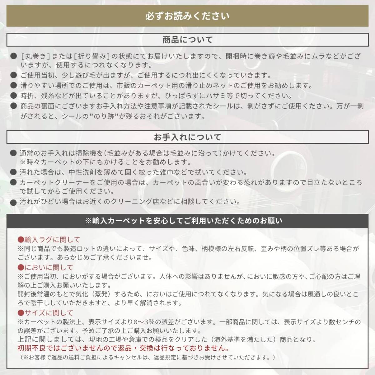 ●サイズに関して ※カーペットの製法上、表示サイズより0~3%の誤差がございます。※いずれも商品の初期不良ではございませんので返品・交換は行なっておりません。