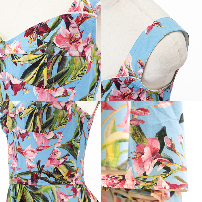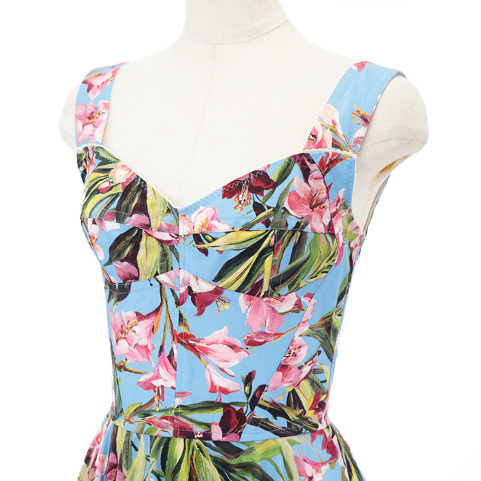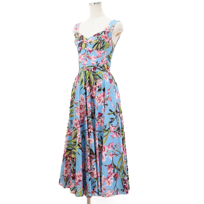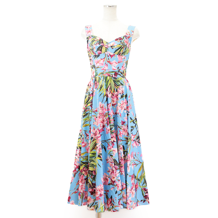 【未使用】ドルチェアンドガッバーナ ボタニカル プリント プリーツ フレア キャミソール ワンピース レディース 38 マルチ DOLCE&GABBANA