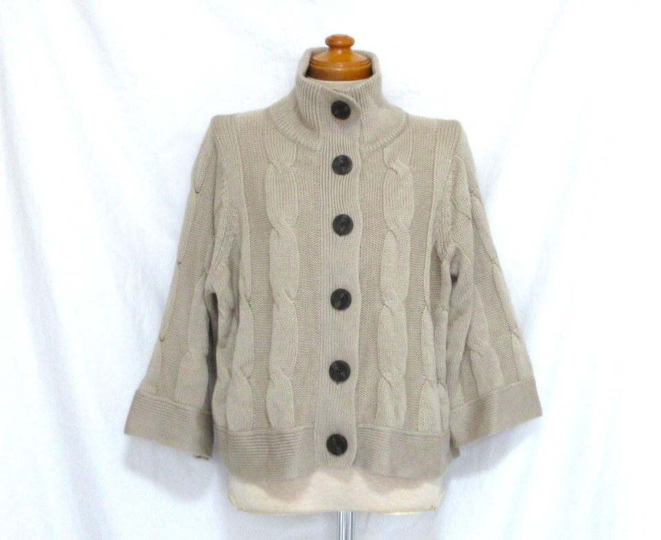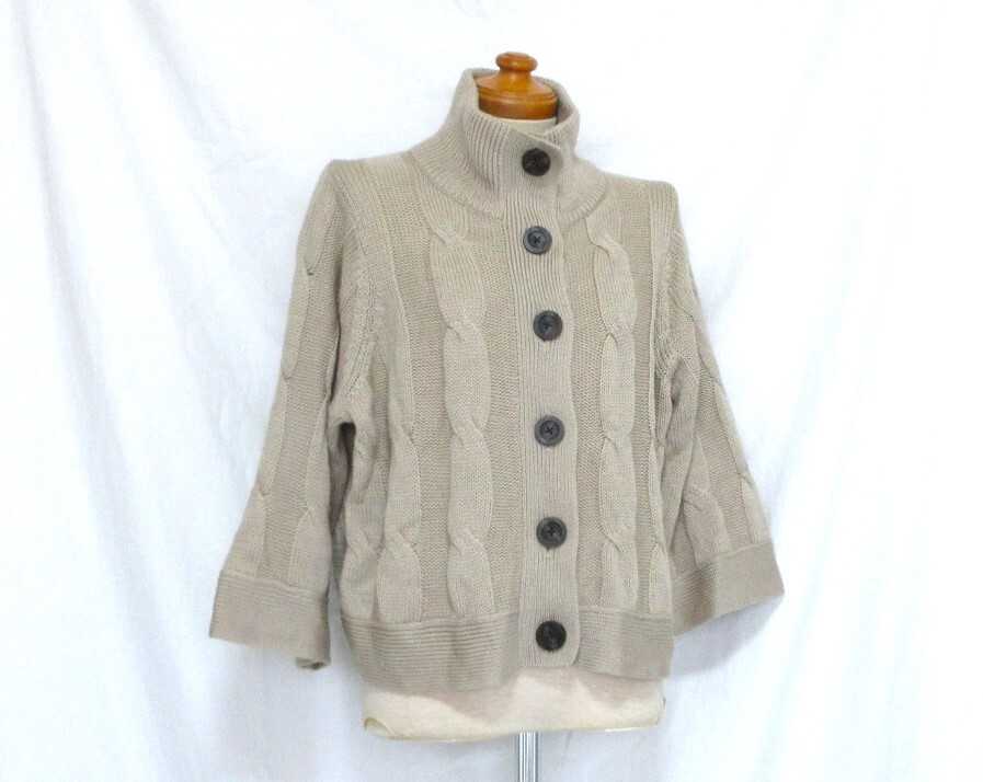 | ベージュカラーのケーブル編みが上品で品と暖かみのある素敵な1枚です。 | ||