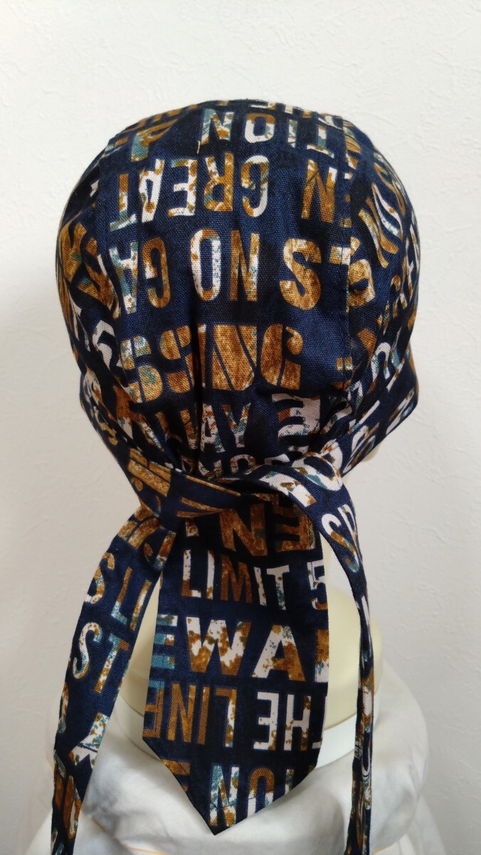 ★バンダナキャップ★ハンドメイド 英字柄 アルファベット 紺 ネイビー