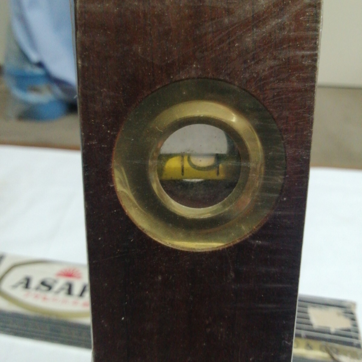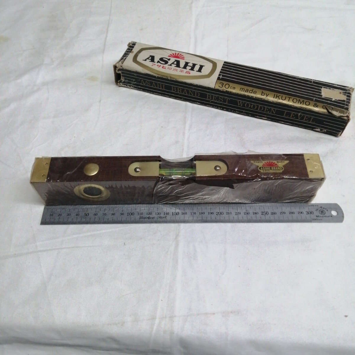 箱入 未使用 アンティーク ウッド 水平器 アサヒ 30cm ゴールド ヴィンテージ ガレージ 隅金具付 送料600円可能 大工道具 DIY
