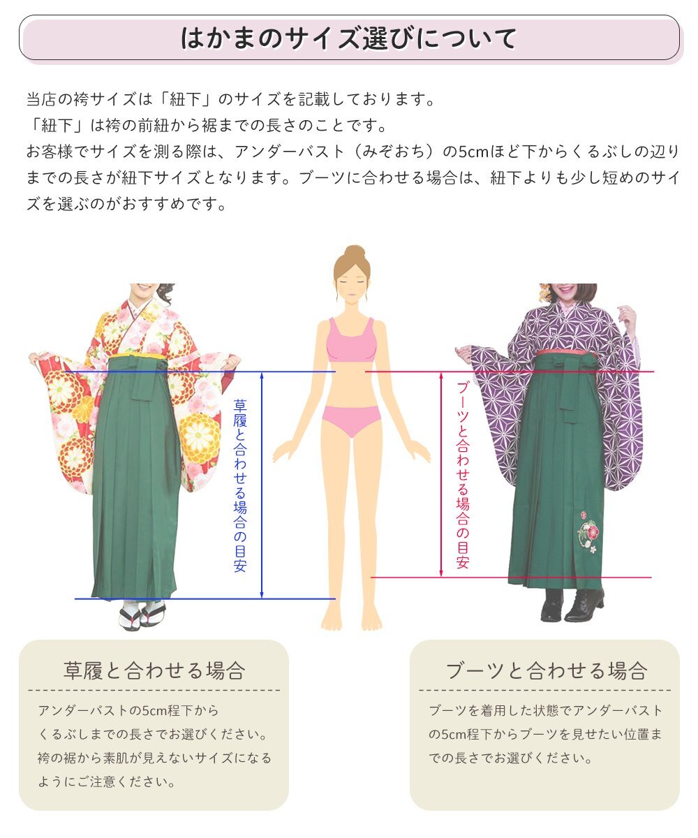 お草履に合わせるときは、みぞおちの辺りからくるぶしの辺りまでの長さで、 ブーツに合わせるときは、ブーツを履いた状態で、みぞおちの辺りからブーツを見せたい位置までの長さでお選びください